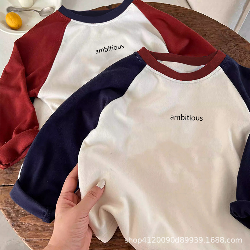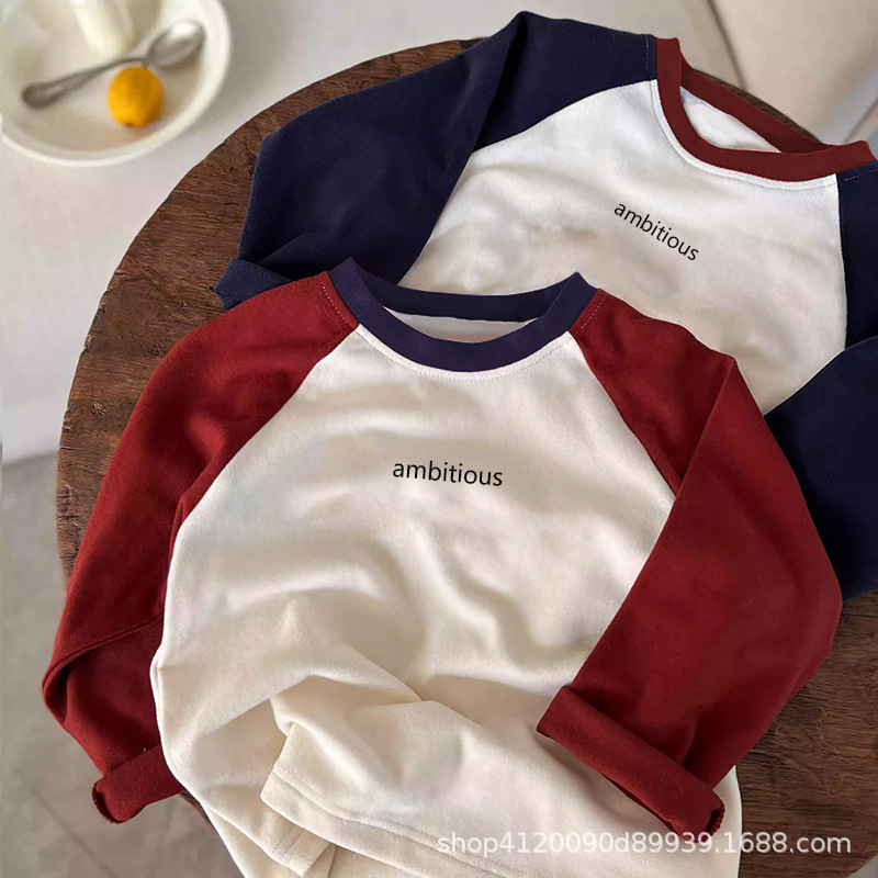 도매 면화 아동용 티셔츠 색상 일치 긴 소매 봄 조수 시원한 중소 아동복 소년 코트 아기 가을 봄 의류