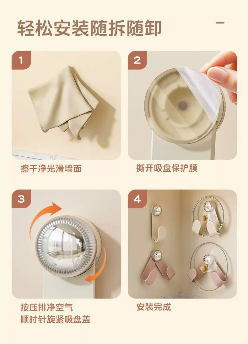 흡입 컵 냄비 뚜껑 랙 주방 크림 스타일 다기능 도마 보관 랙 가정용 벽걸이 형 디자인 펀치없는 보관 랙
