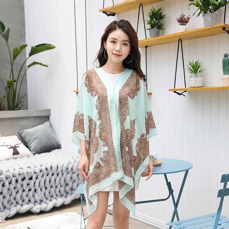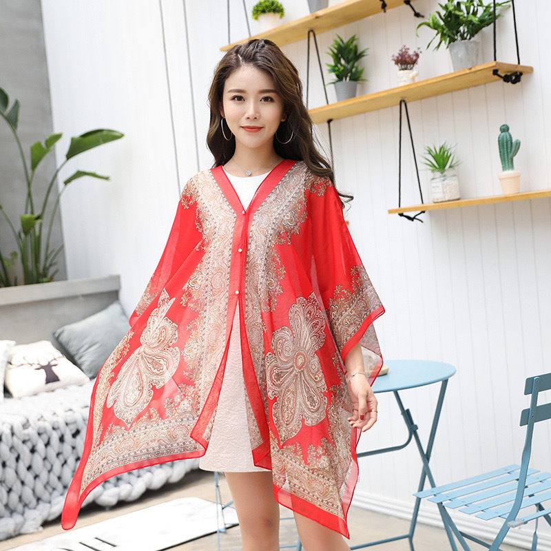 봄과 여름 실크 스카프 긴 하이 엔드 투피스 진주 버클 다기능 캐슈 꽃 선 스크린 목도리 라이브 폭발