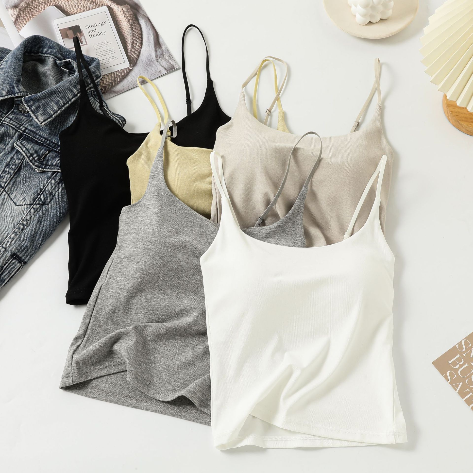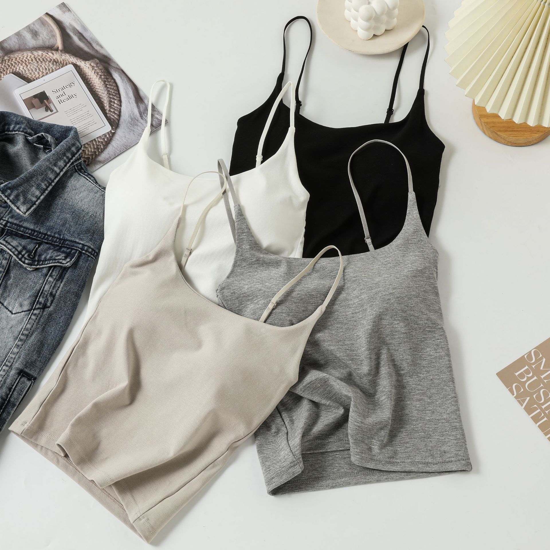 봄 및 여름 모달 조정 가능한 어깨 스트랩 가슴 패드 고정 코스터 Camisole 여성의 내부 민소매 탑스토어 가기