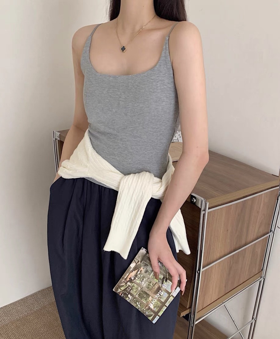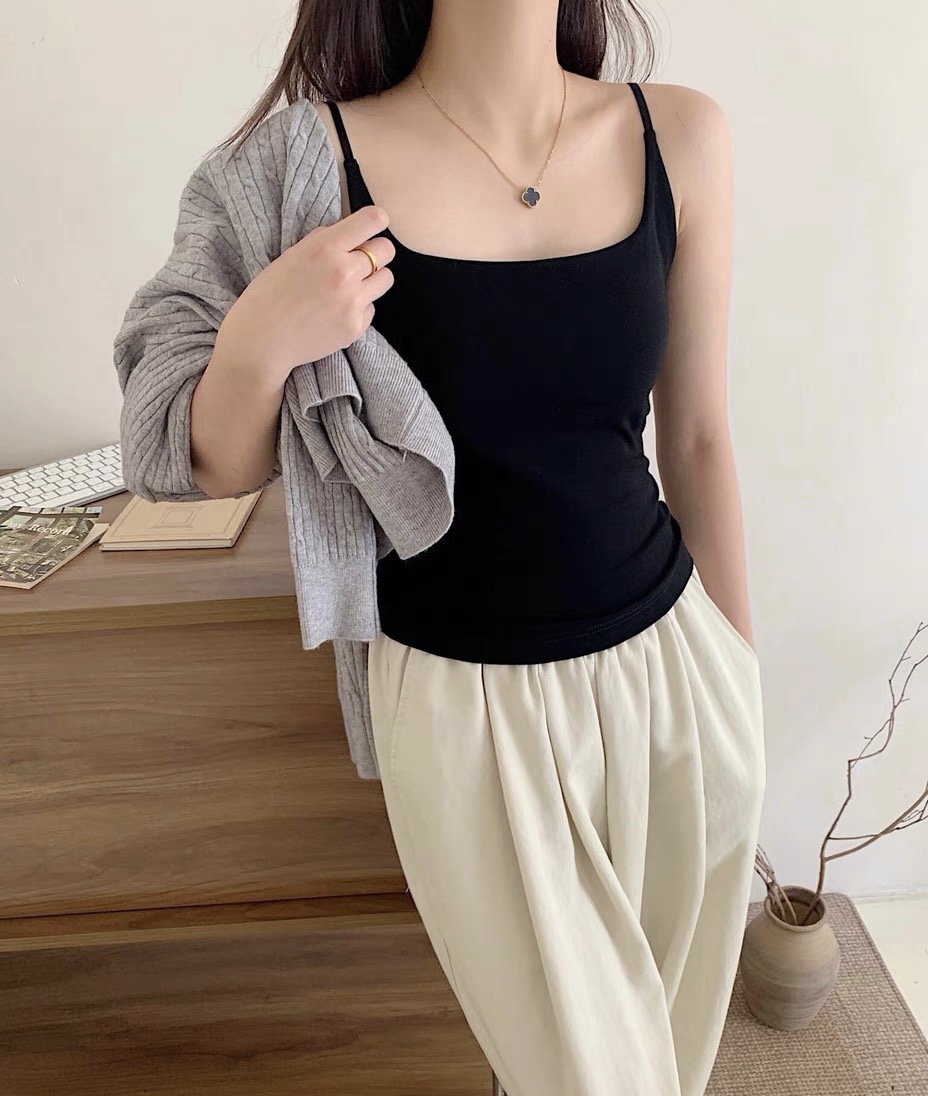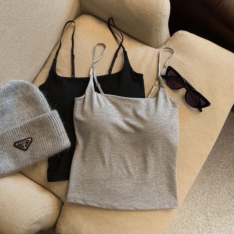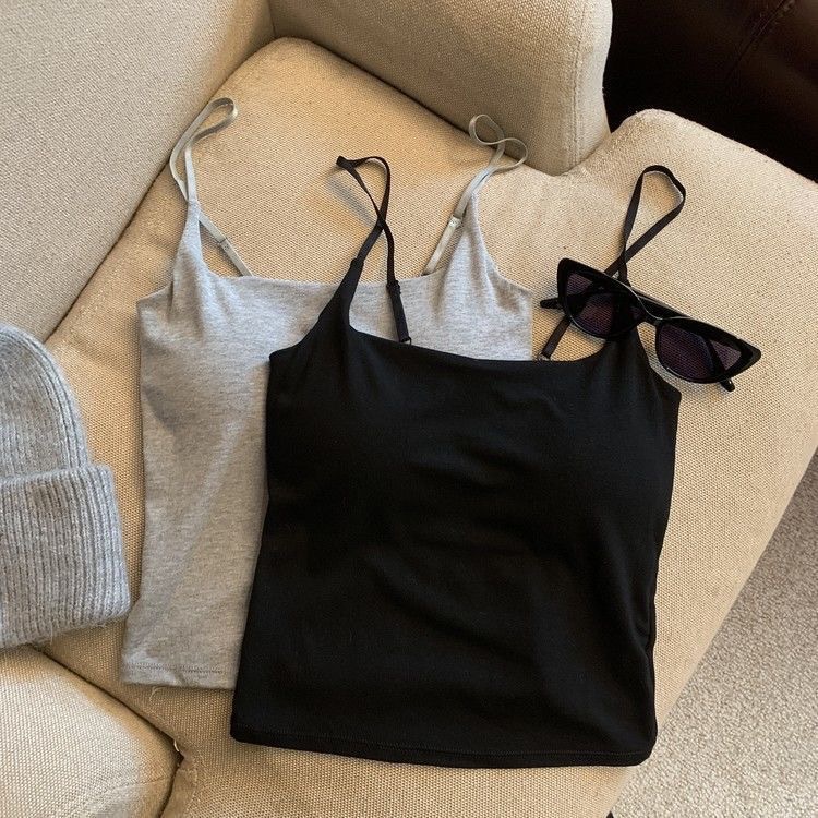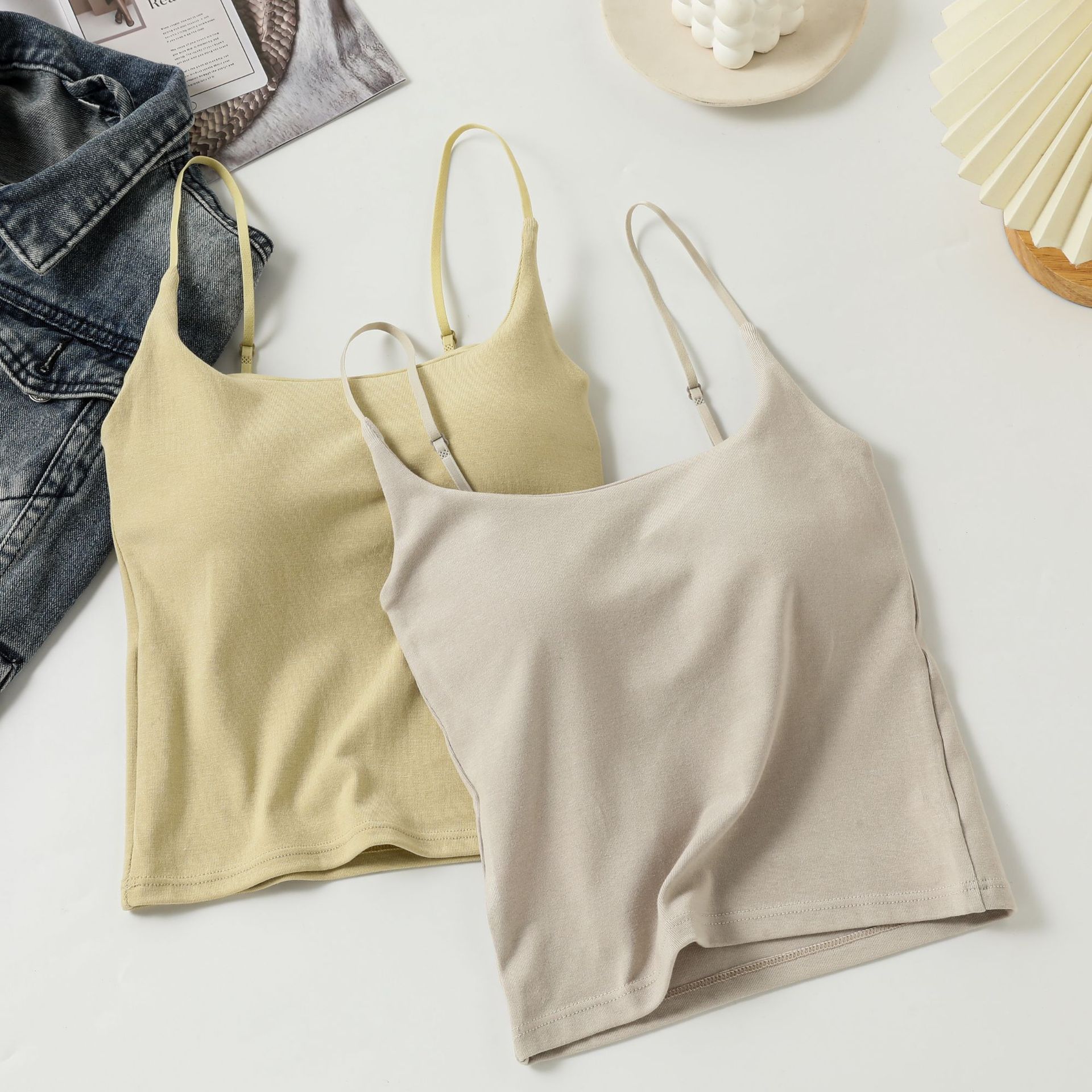 봄 및 여름 모달 조정 가능한 어깨 스트랩 가슴 패드 고정 코스터 Camisole 여성의 내부 민소매 탑