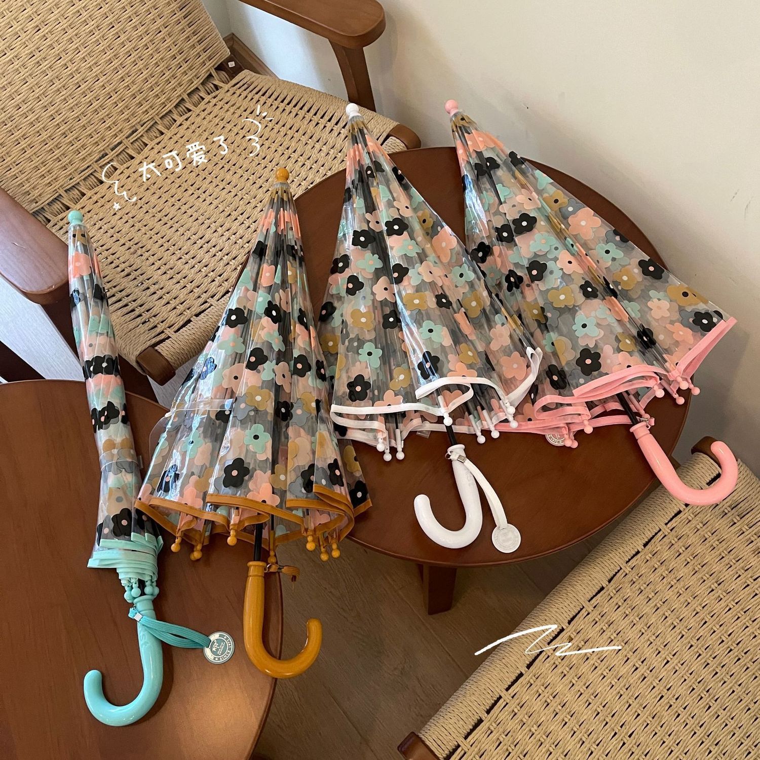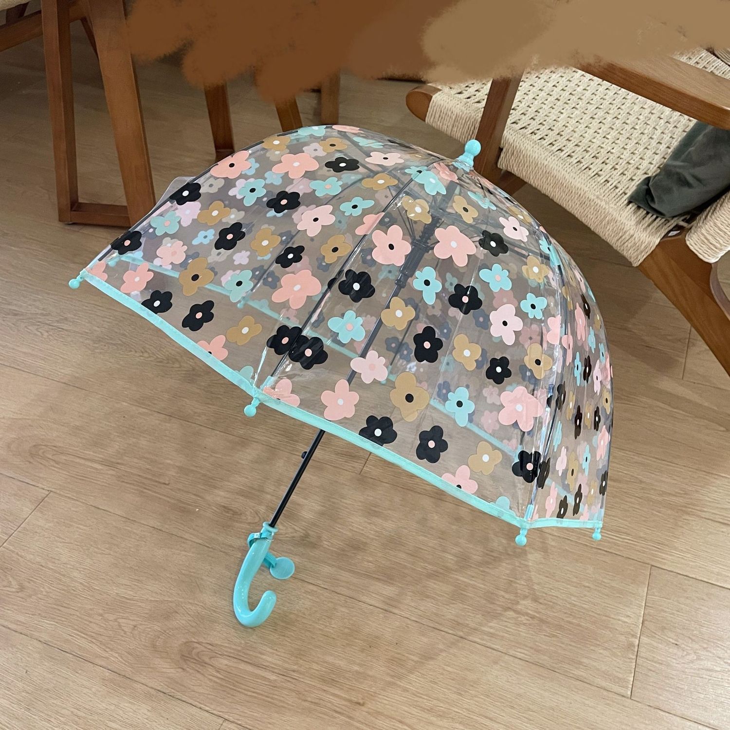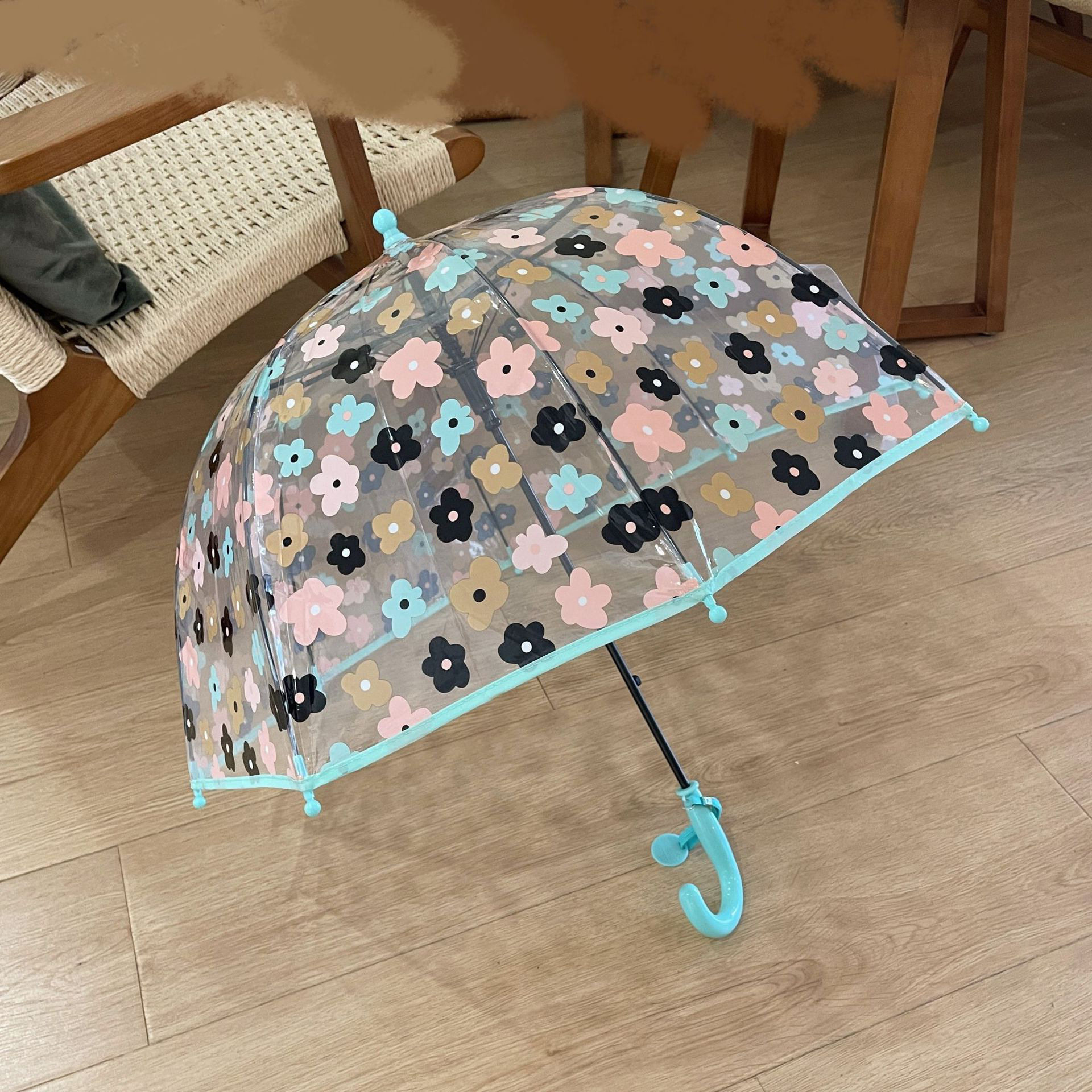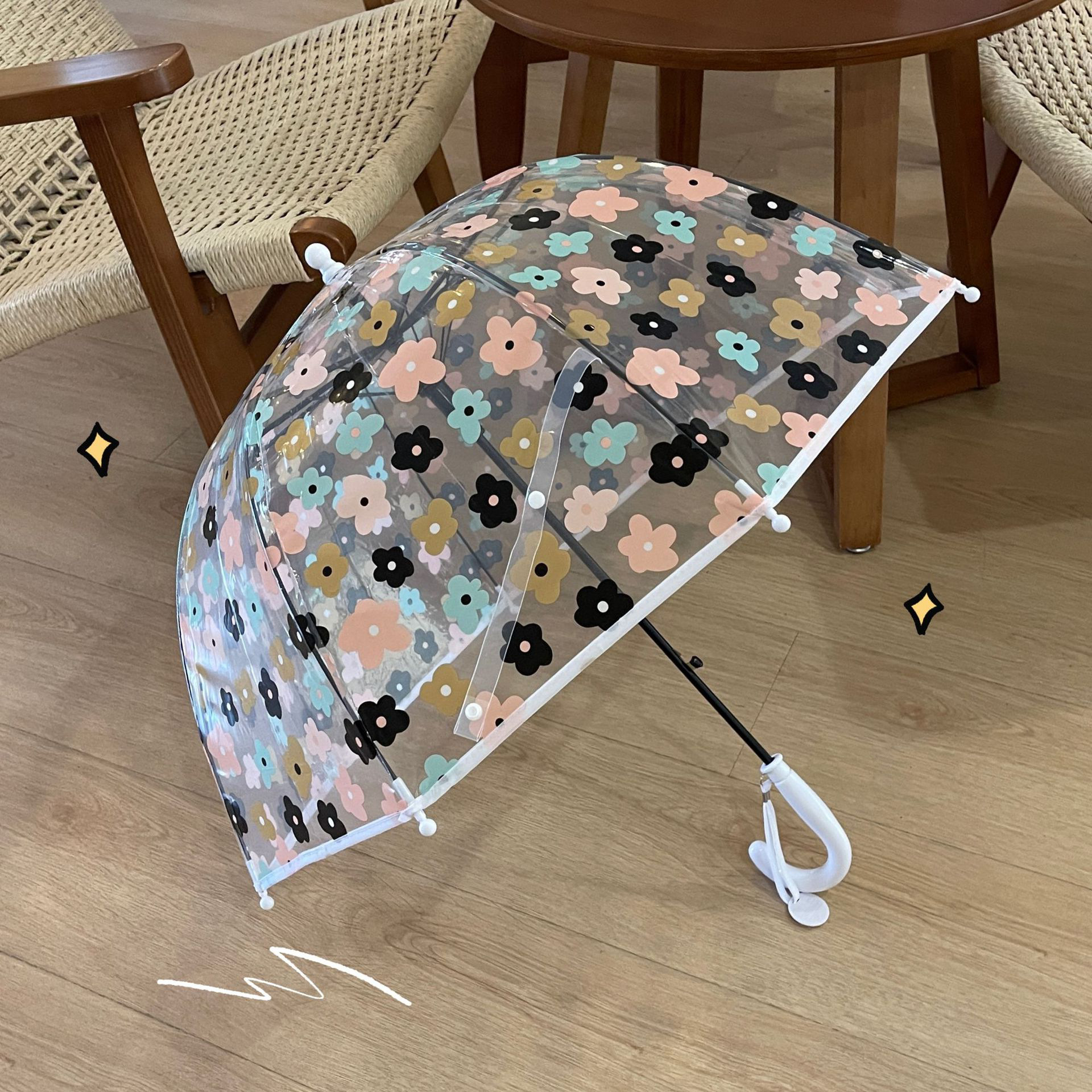 2-5 년 된 다채로운 꽃 어린이 투명 우산 소녀 공주 아치 유치원 아기 소년 긴 손잡이 우산