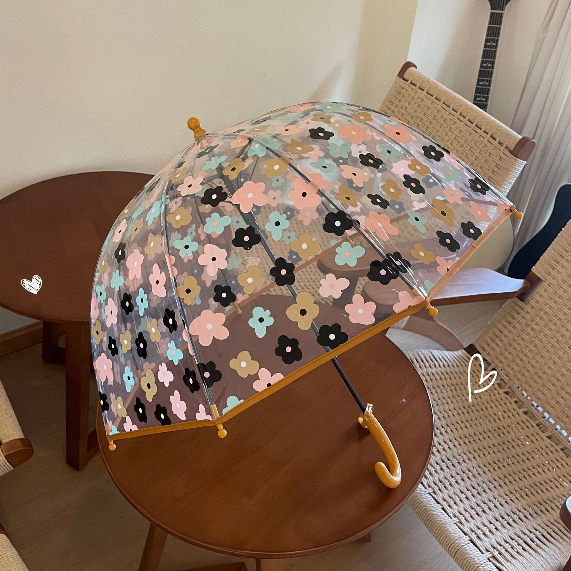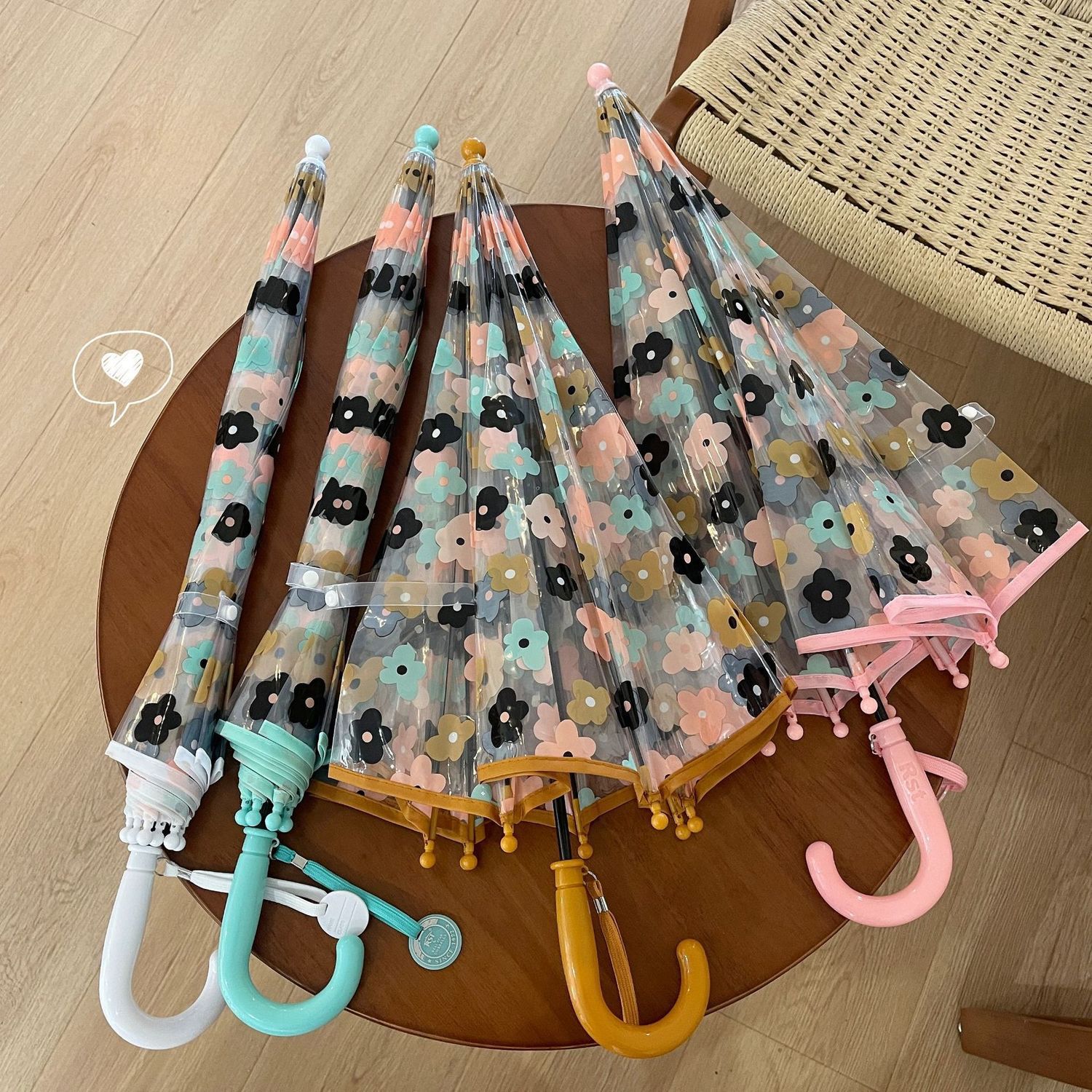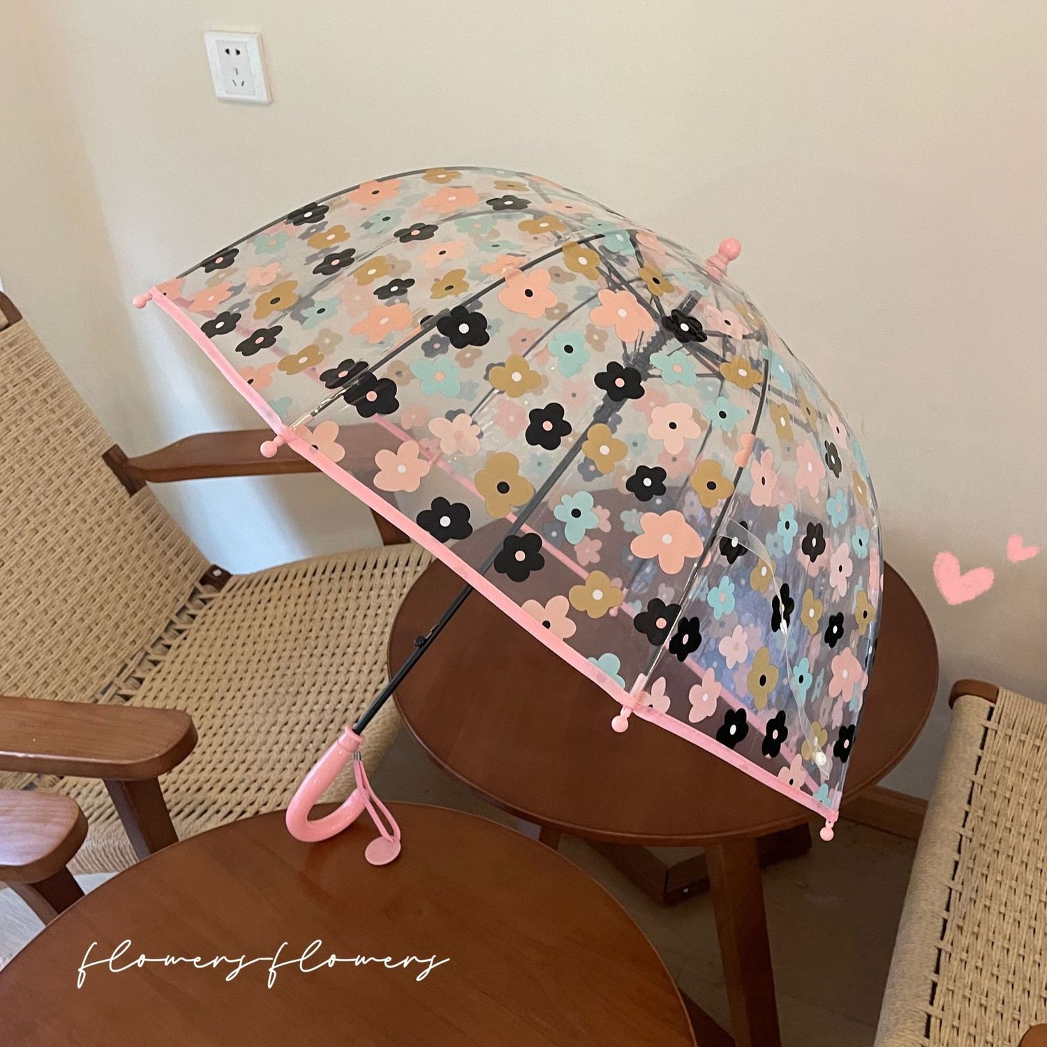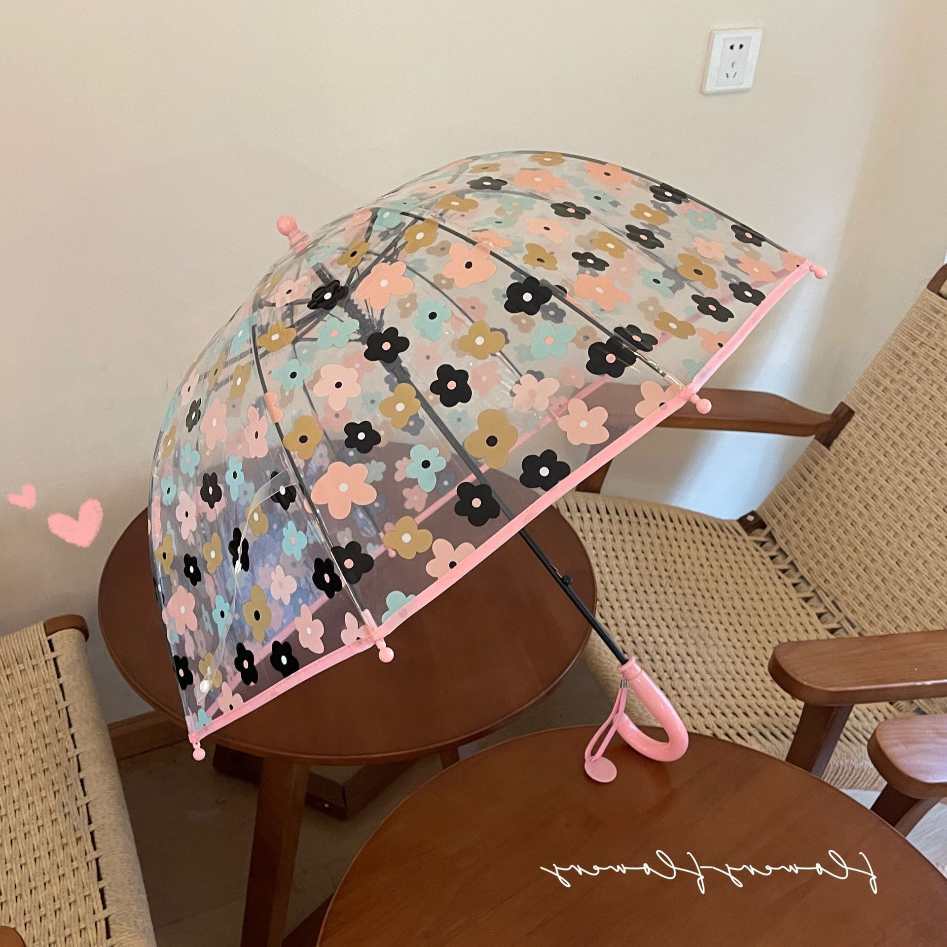 2-5 년 된 다채로운 꽃 어린이 투명 우산 소녀 공주 아치 유치원 아기 소년 긴 손잡이 우산