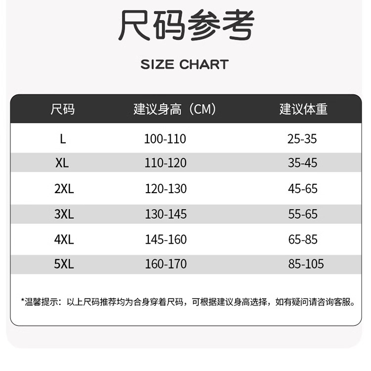 • 탈착식 가슴 패드 포함 5XL (150-160cm 권장 키, 37.5-46.5kg )