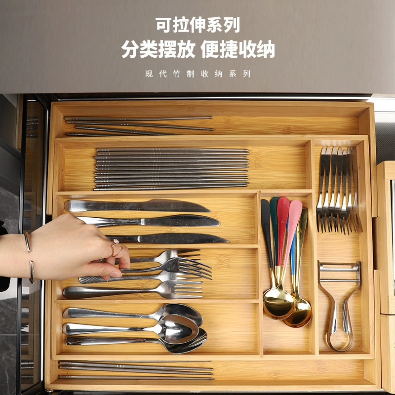 국경 간 일본식 주방 식기 나이프와 포크 박스 데스크탑 테이블 대나무 상자 망원경 주방 서랍 보관 상자스토어 가기