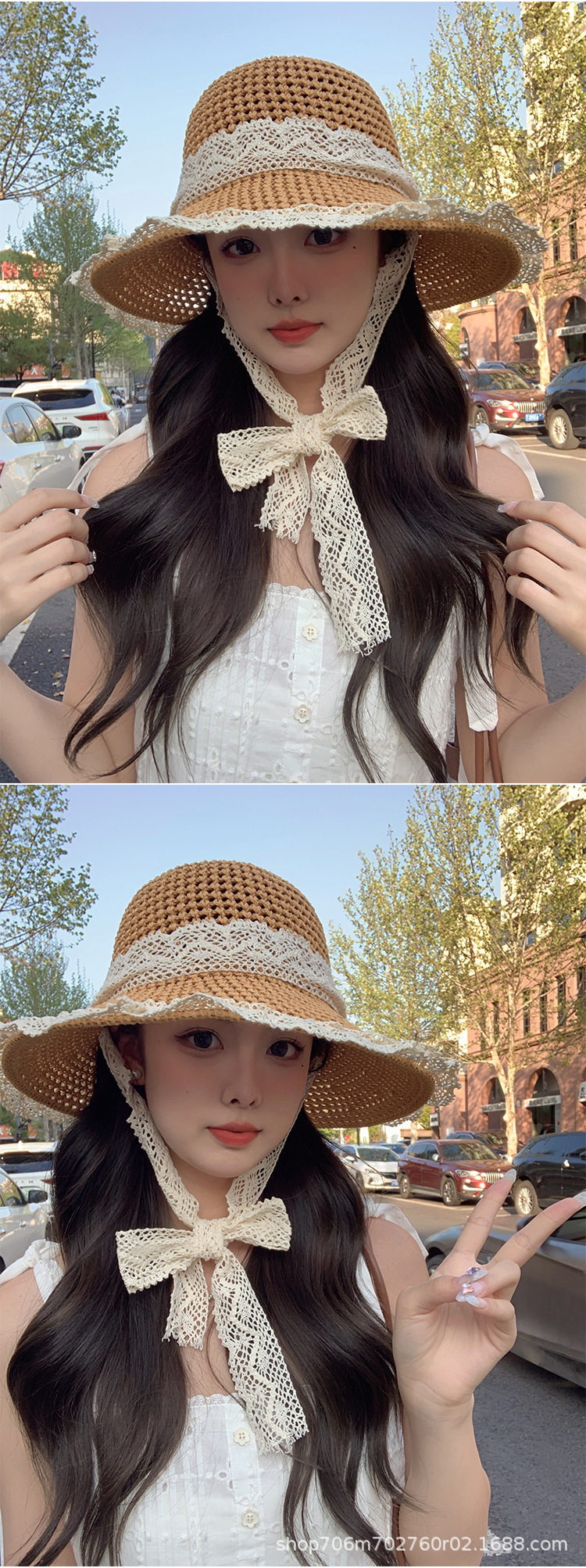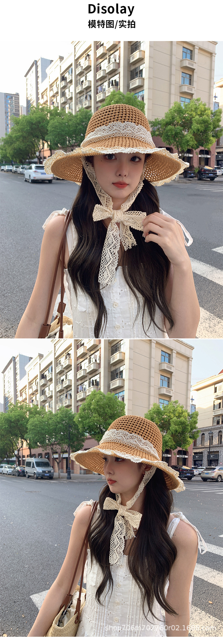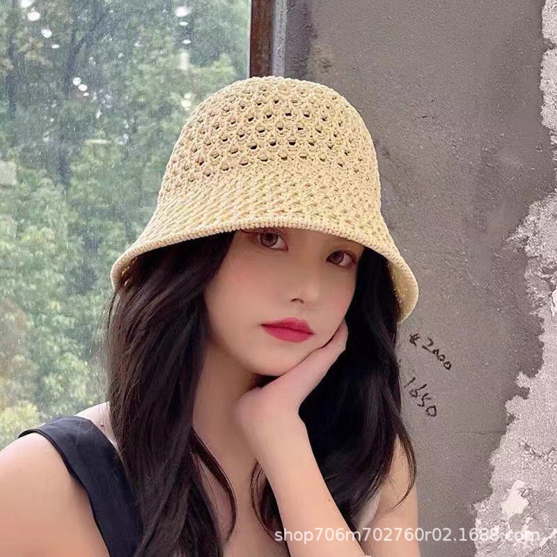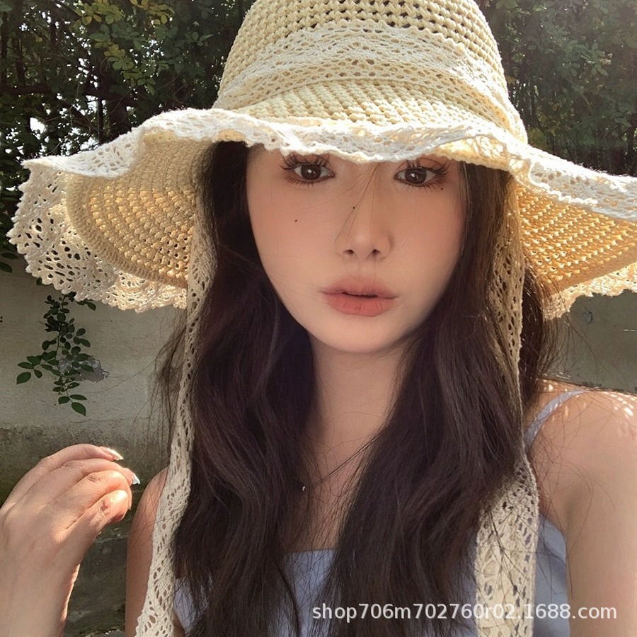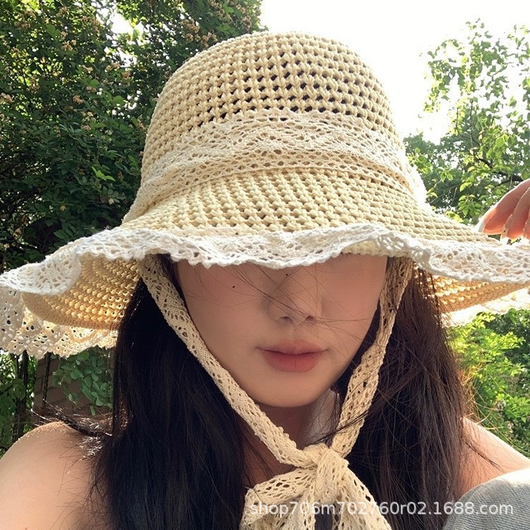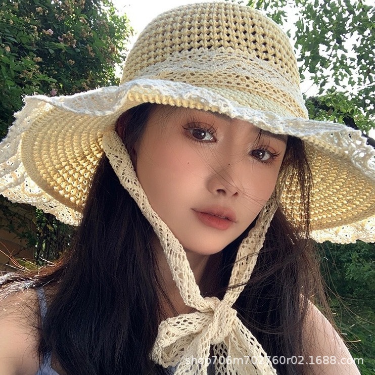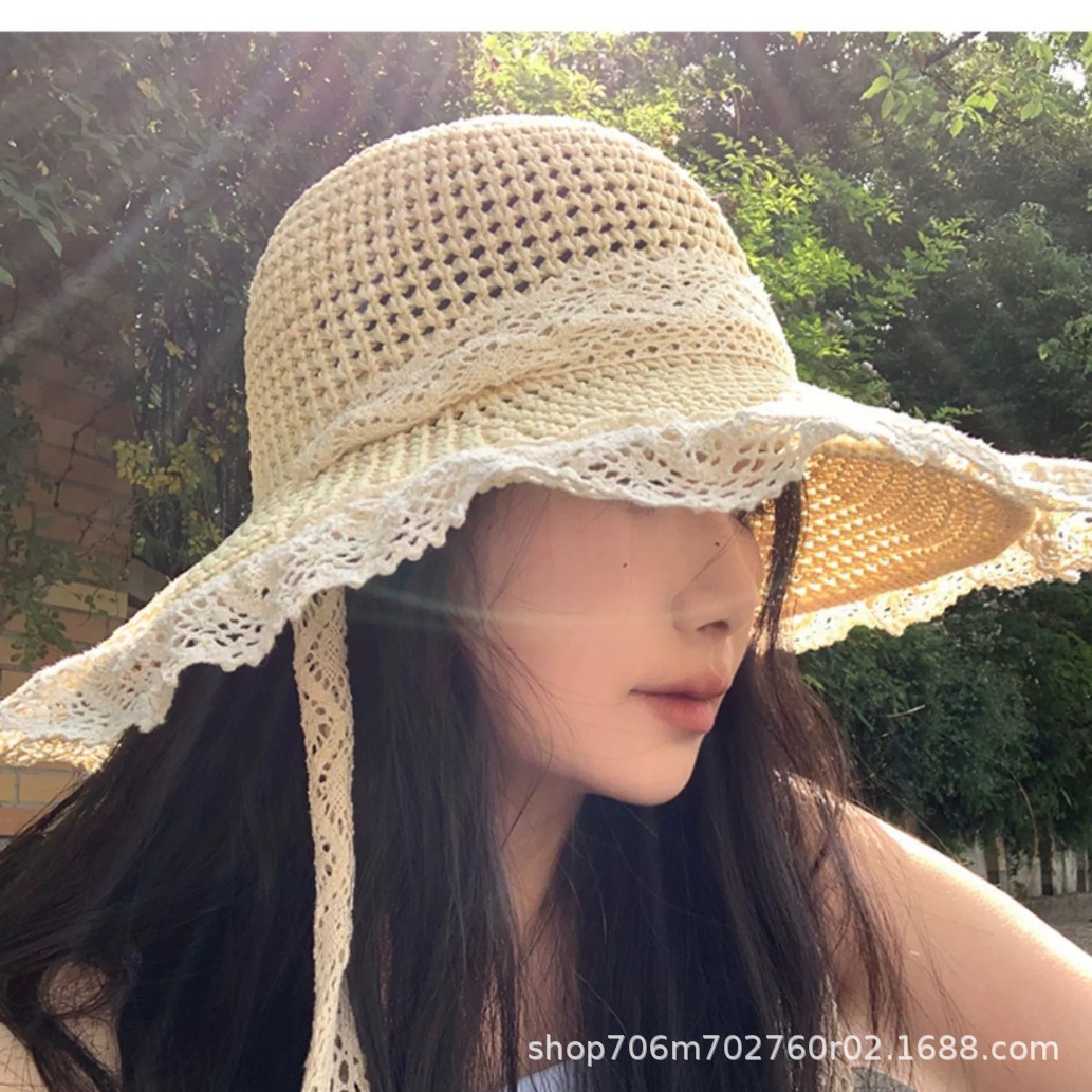 여름 접이식 나비 매듭 중공 통기성 태양 모자 야외 해변 태양 모자 여성 모자 국경 간 도매 대리점