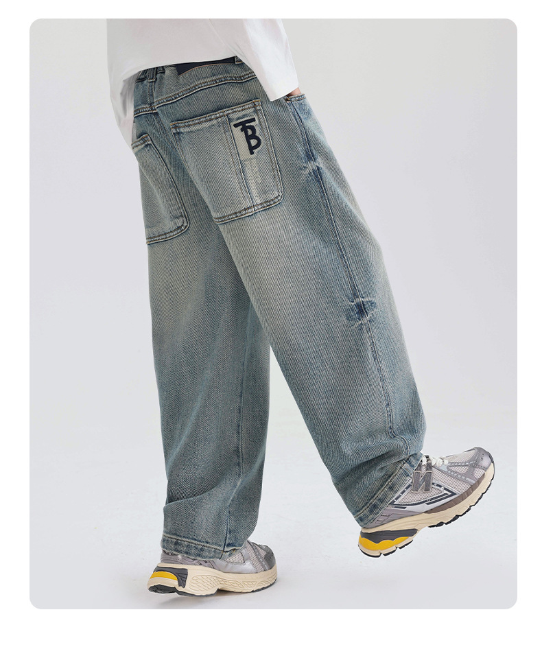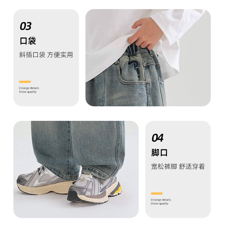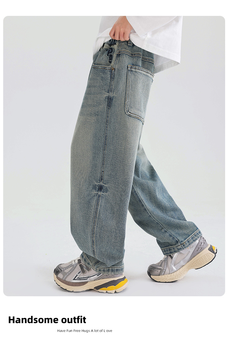 소년의 부드러운 청바지 2025 어린이 봄과 가을 바지 봄 새로운 도착 소년 바지 중대형 어린이 봄 스트레이트 다리 바지스토어 가기