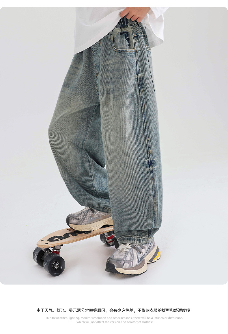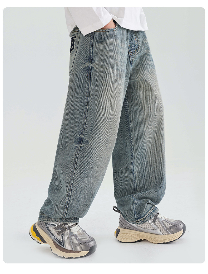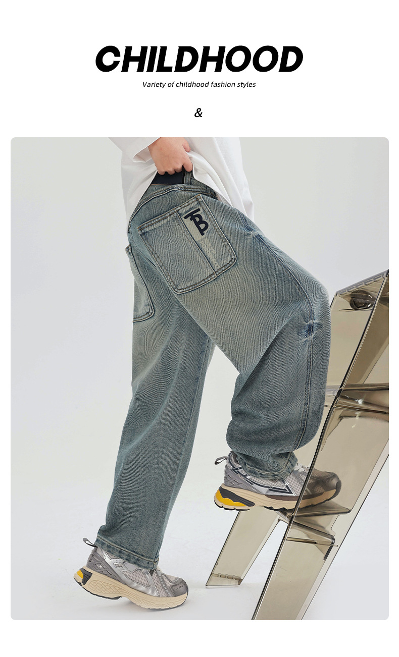 소년의 부드러운 청바지 2025 어린이 봄과 가을 바지 봄 새로운 도착 소년 바지 중대형 어린이 봄 스트레이트 다리 바지