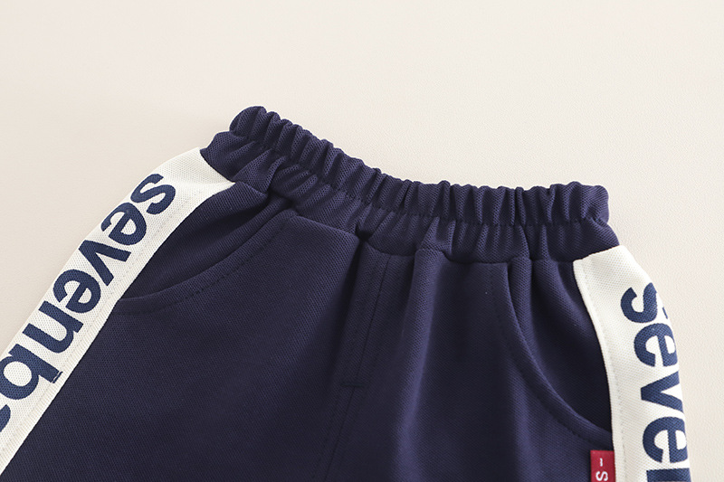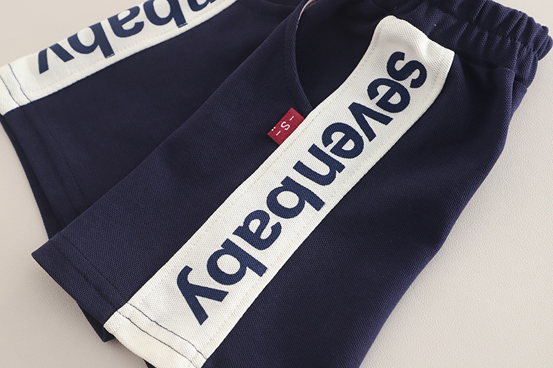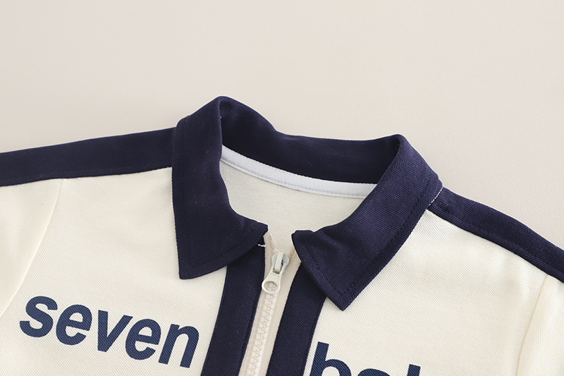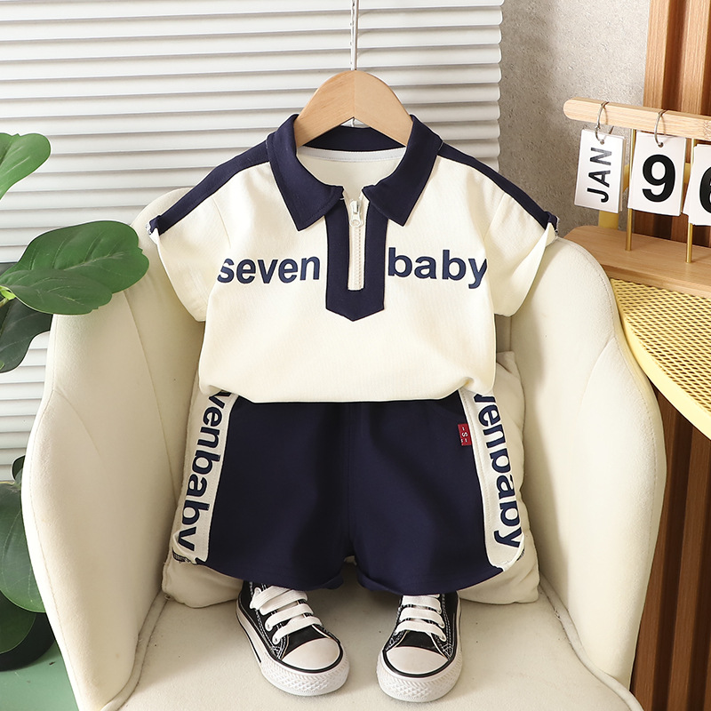 어린이 여름 새 소년 옷깃 지퍼 영어 아기 스포츠 풀 솔리드 컬러 투피스 어린이 세트스토어 가기
