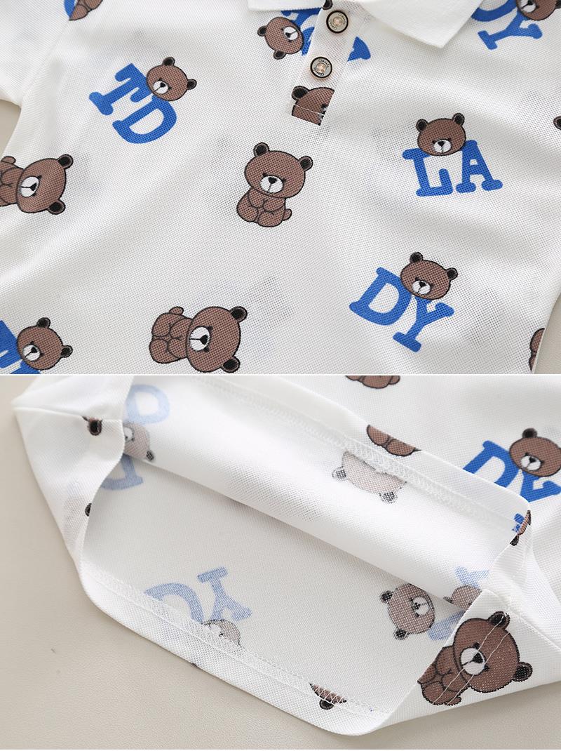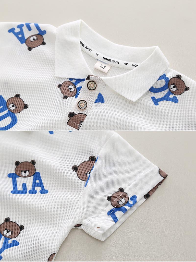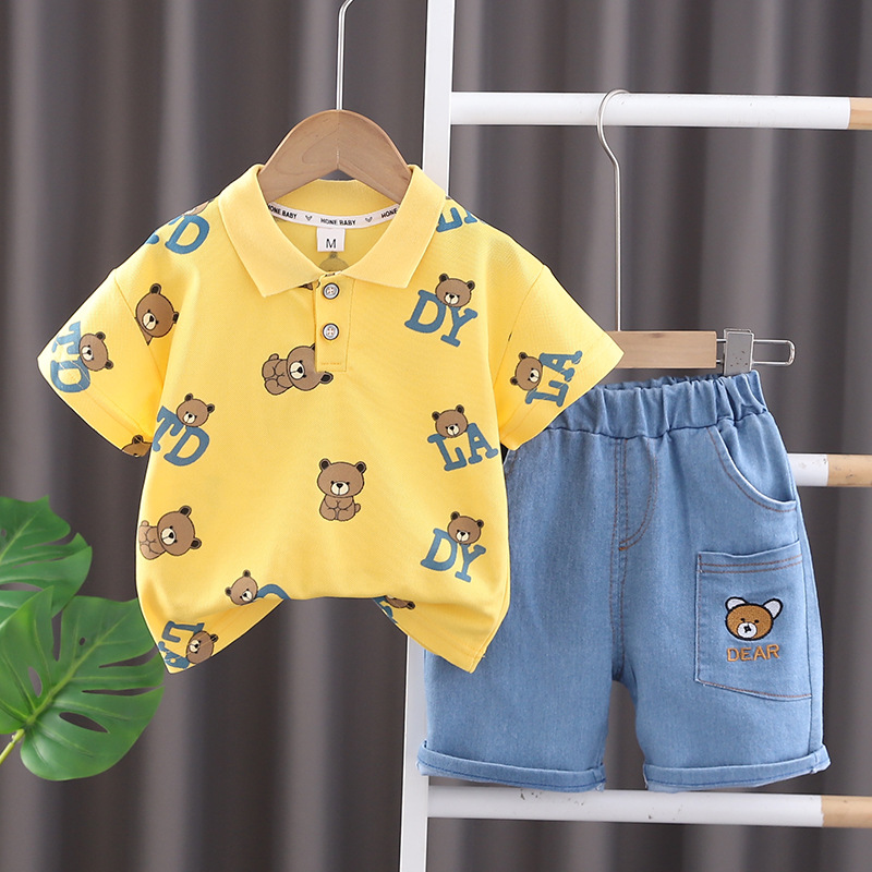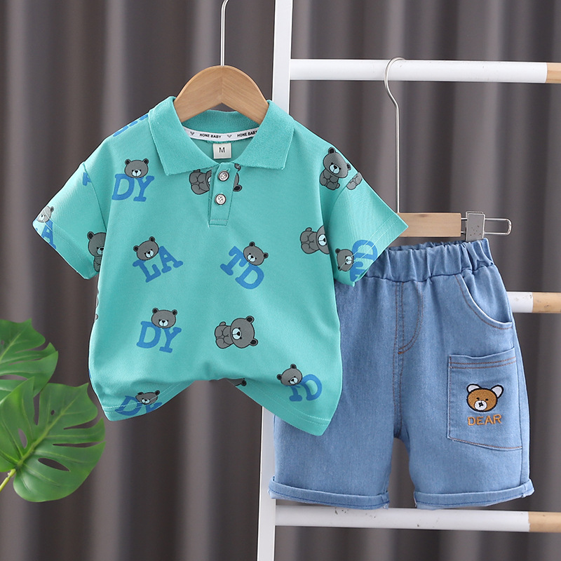 만화 아동복 도매 어린이 여름 느슨한 인쇄 곰 짧은 소매 티셔츠 바지 2 세트 작은 소년 옷