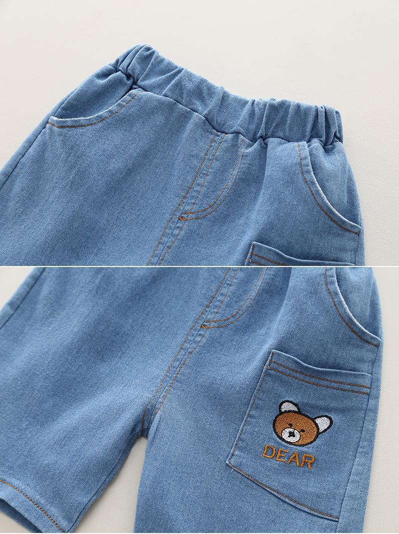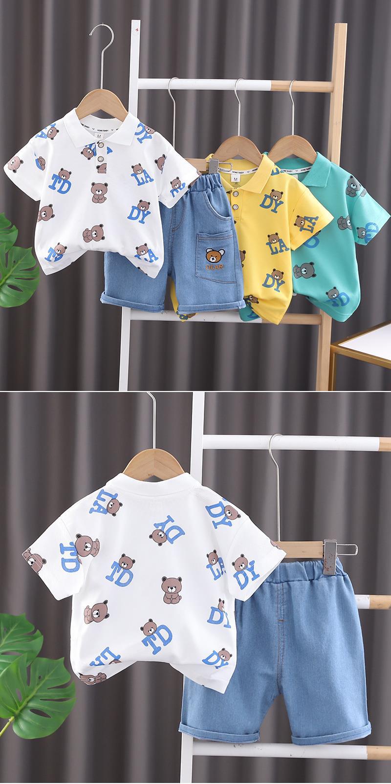 만화 아동복 도매 어린이 여름 느슨한 인쇄 곰 짧은 소매 티셔츠 바지 2 세트 작은 소년 옷스토어 가기