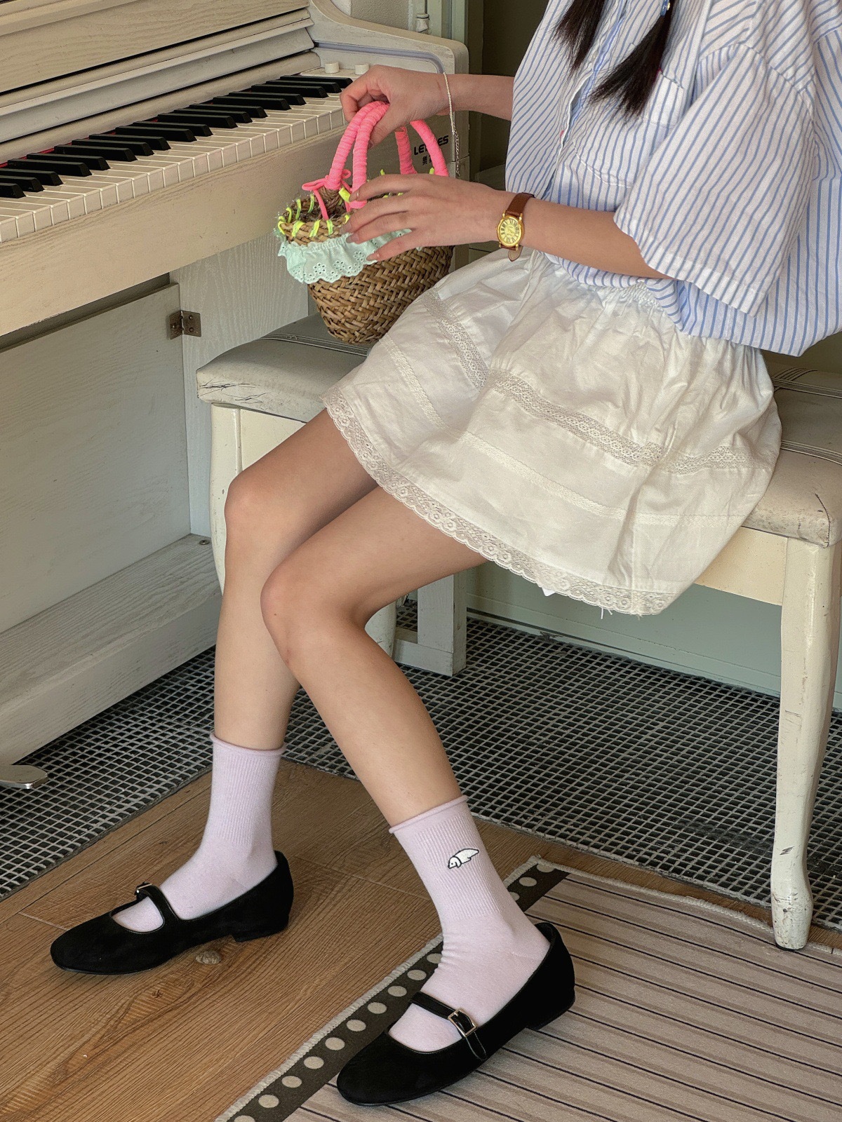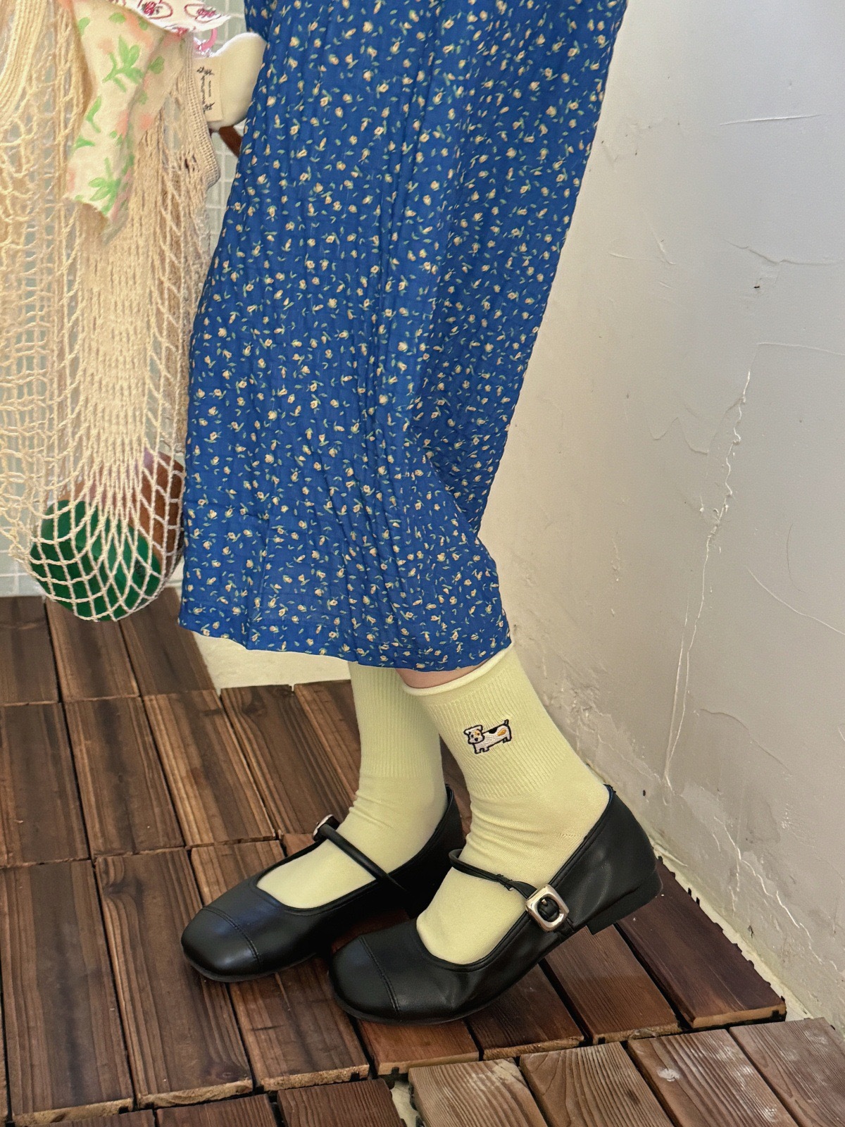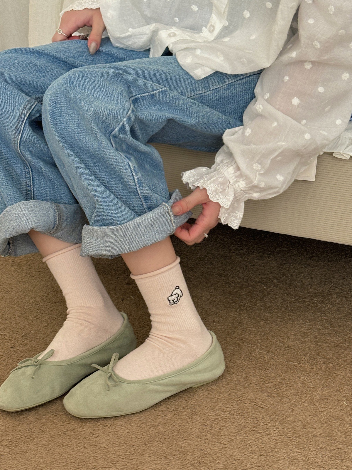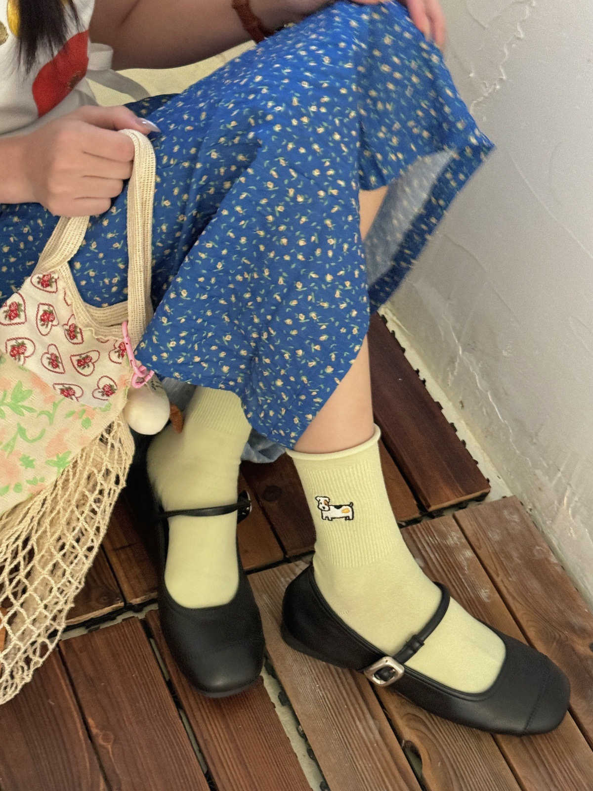 IOULOR 뼈없는 컬러 자수 귀여운 강아지 튜브 양말 올 매치 캐주얼 만화 일본 헴 봄과 가을 면화 양말