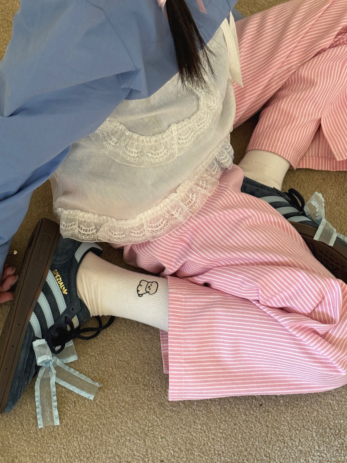 IOULOR 뼈없는 컬러 자수 귀여운 강아지 튜브 양말 올 매치 캐주얼 만화 일본 헴 봄과 가을 면화 양말스토어 가기