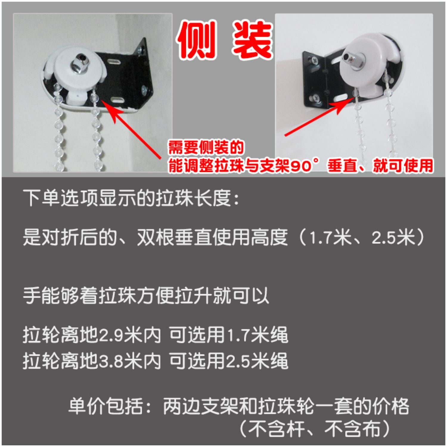 금속 기어 롤러 셔터 컨트롤러 핸드 풀 비드 타입 위아래로 커튼 로프 다이아몬드 아이언 헤드 두꺼운 브래킷 액세서리