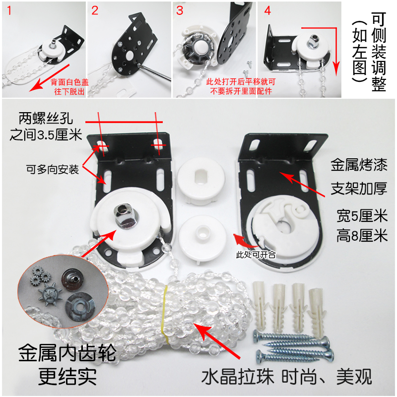 금속 기어 롤러 셔터 컨트롤러 핸드 풀 비드 타입 위아래로 커튼 로프 다이아몬드 아이언 헤드 두꺼운 브래킷 액세서리스토어 가기