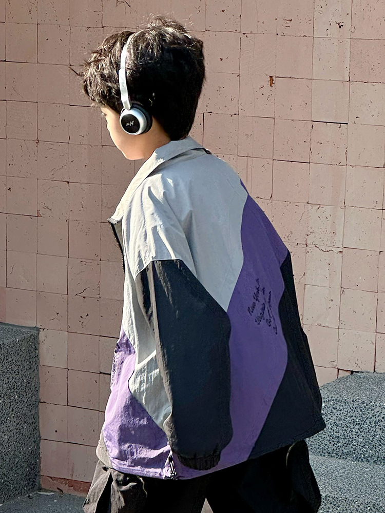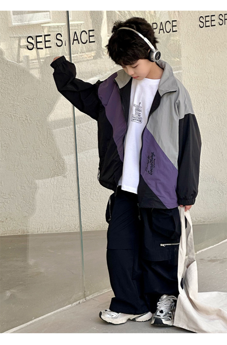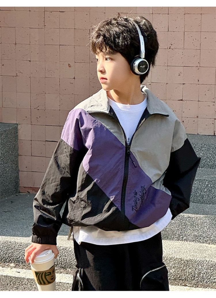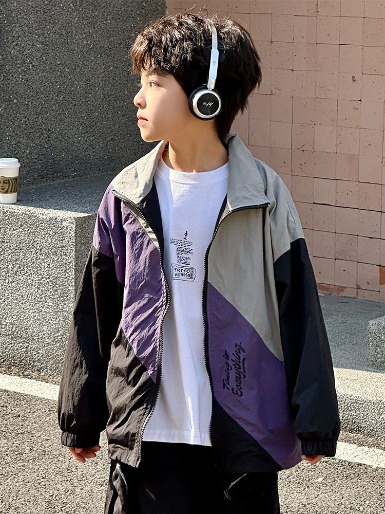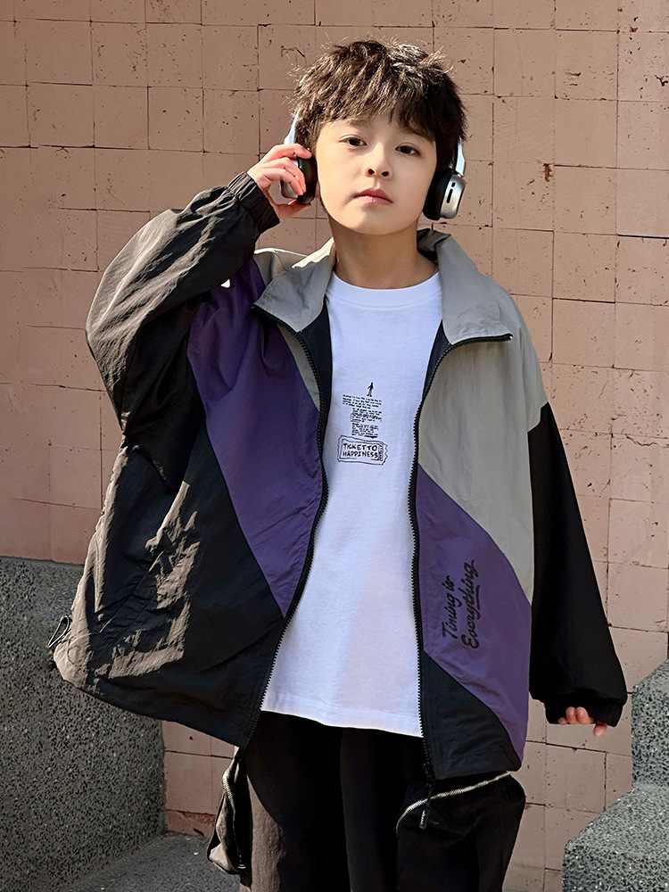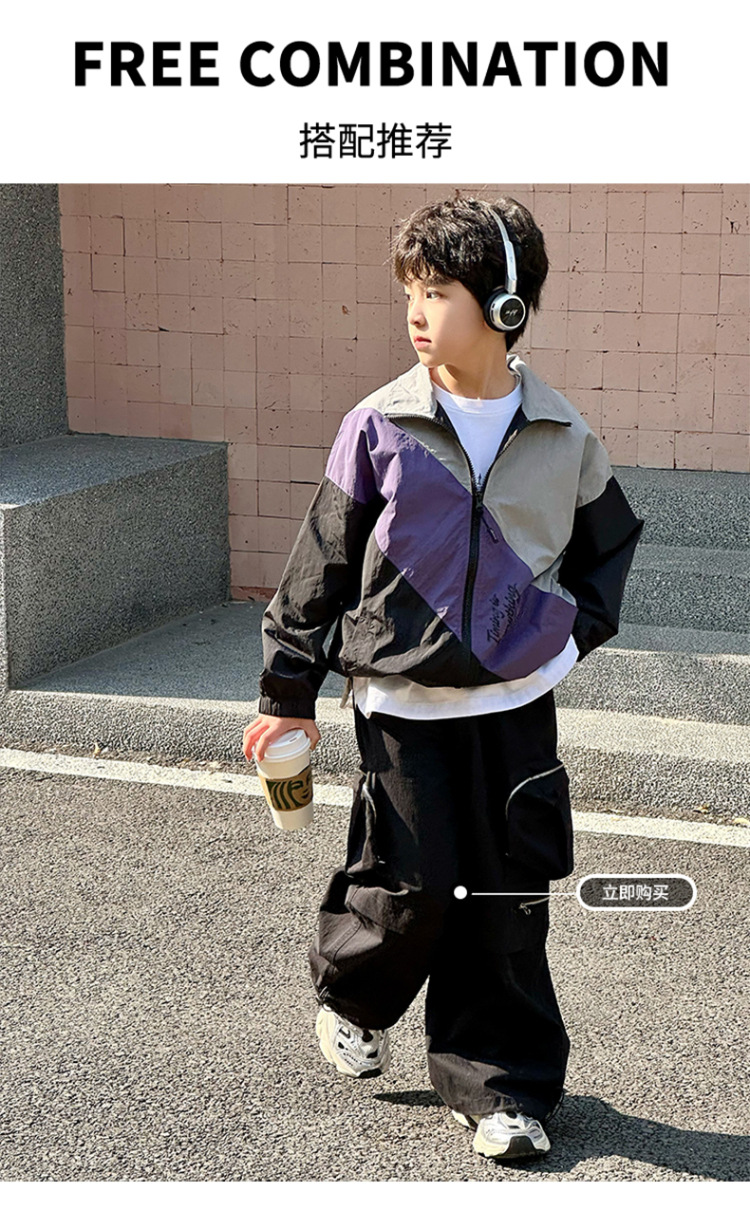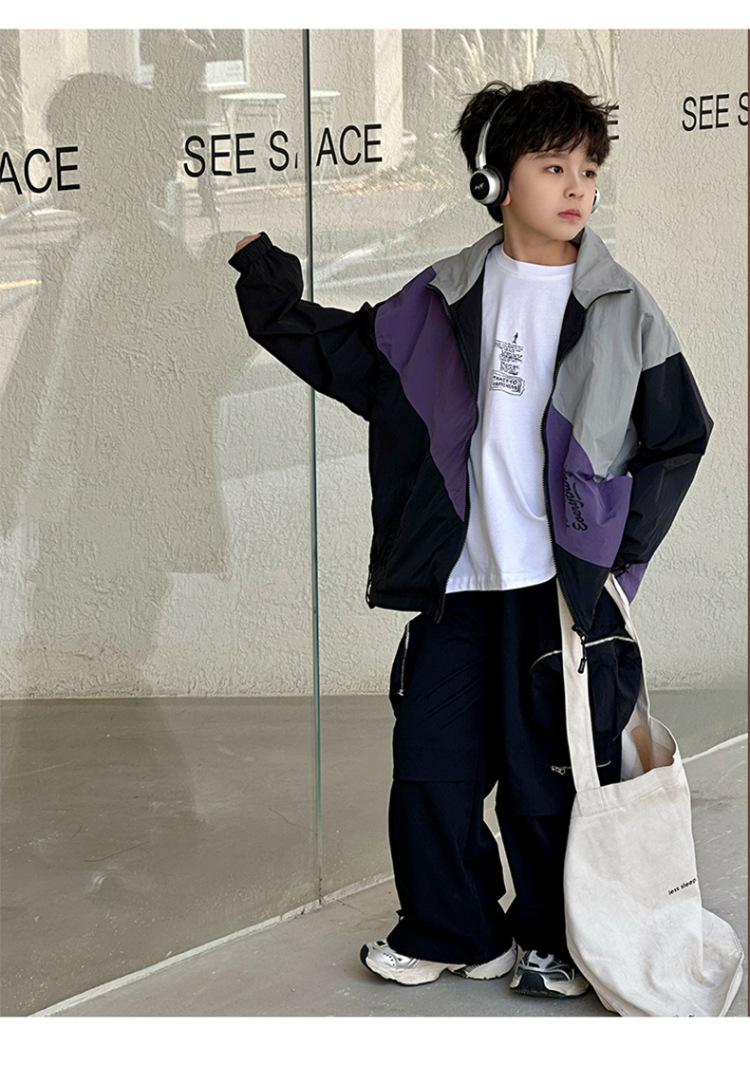 어린이 콘트라스트 탑 2025 봄 새로운 외국 스타일의 세련된 튀김 거리 소년 얇은 코트, 바지스토어 가기
