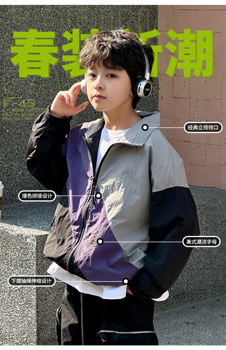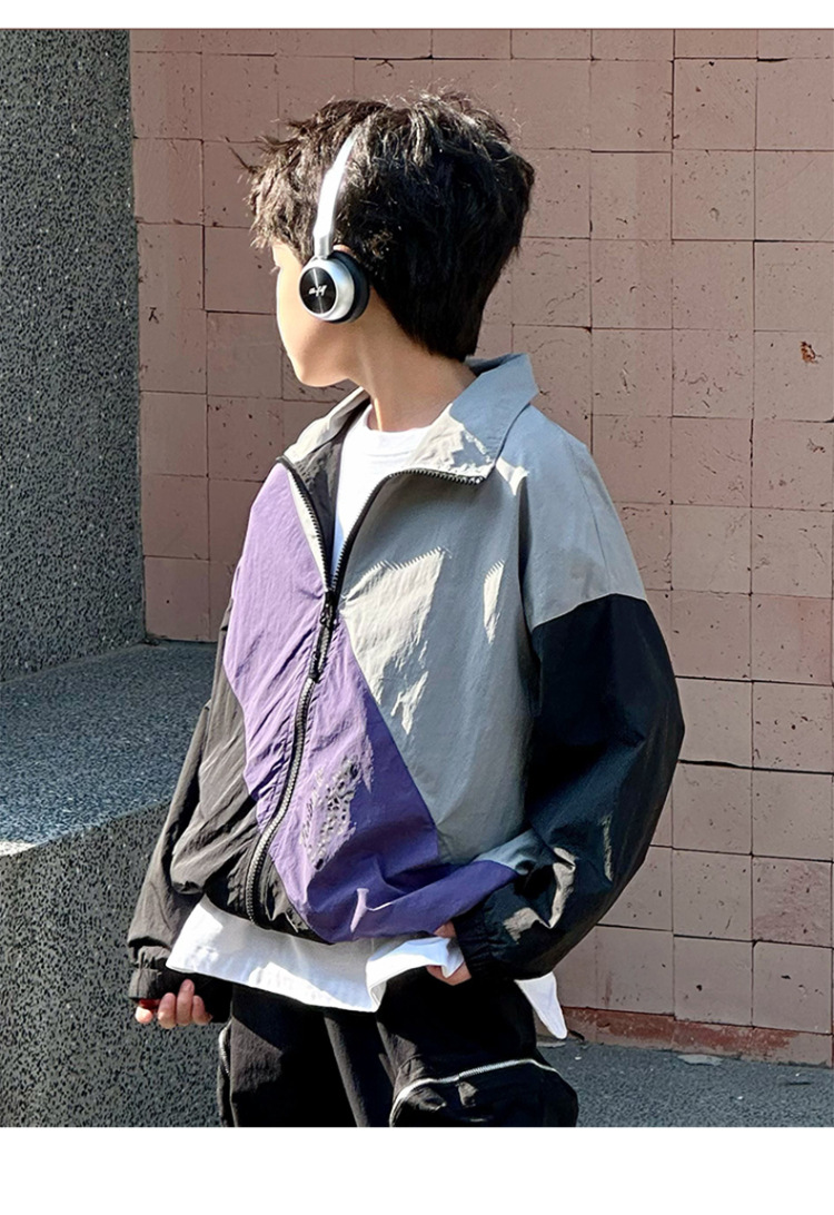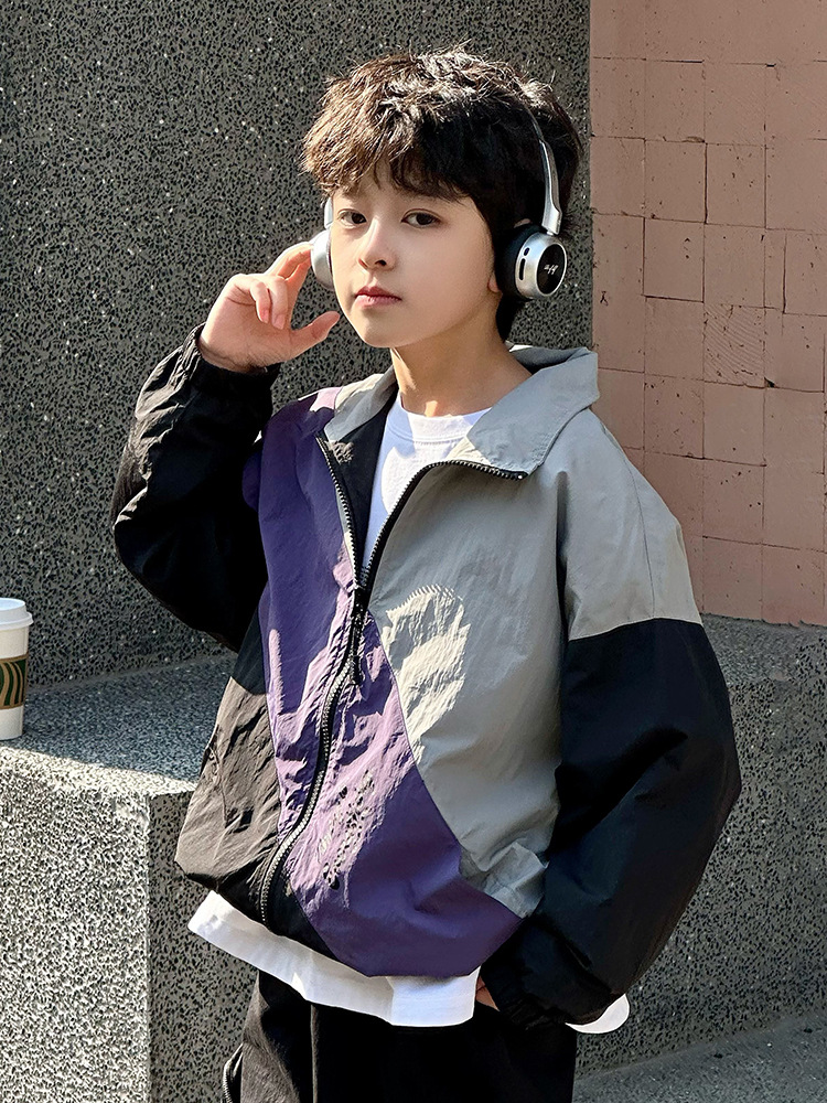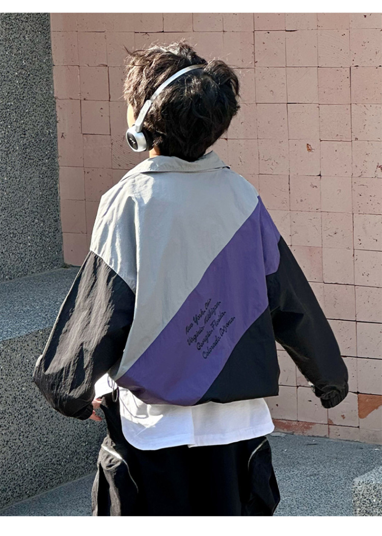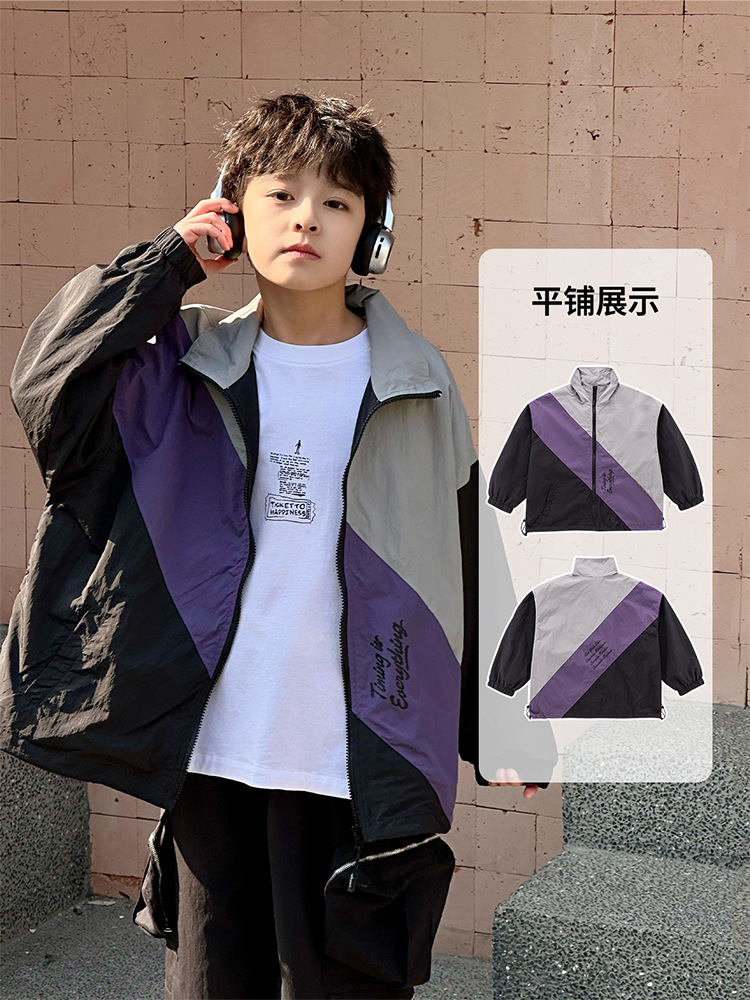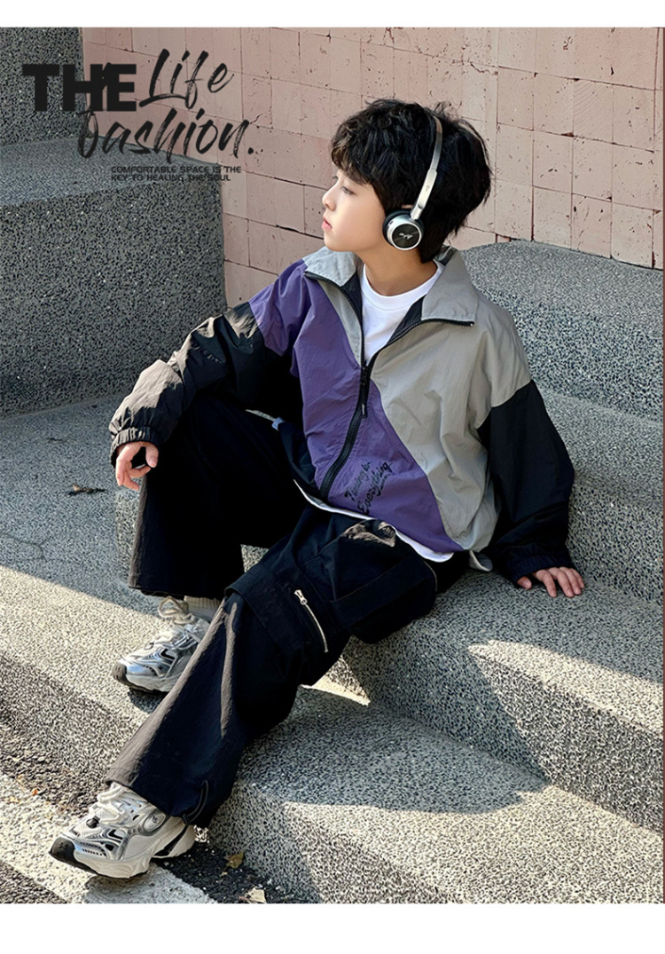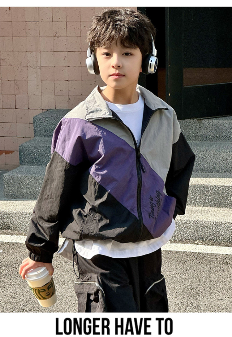 어린이 콘트라스트 탑 2025 봄 새로운 외국 스타일의 세련된 튀김 거리 소년 얇은 코트, 바지스토어 가기