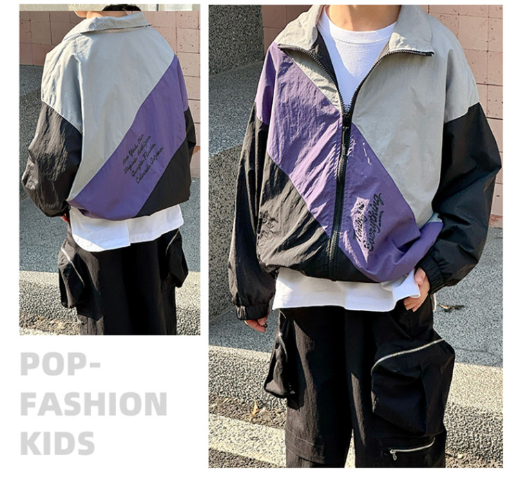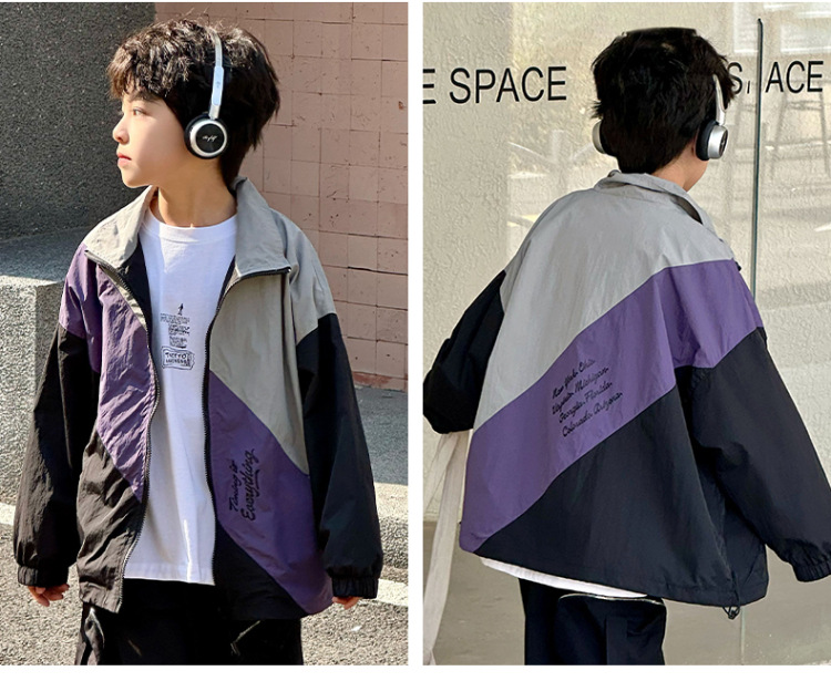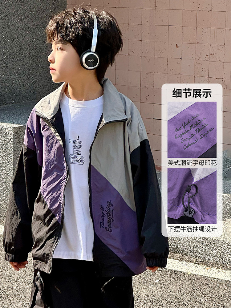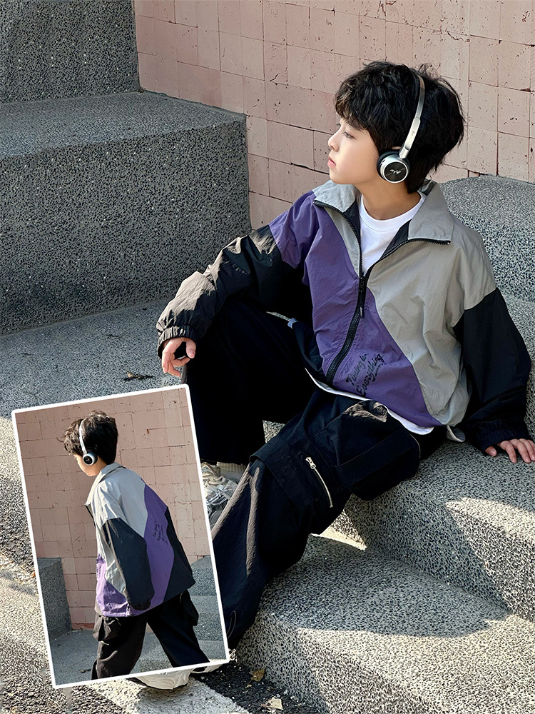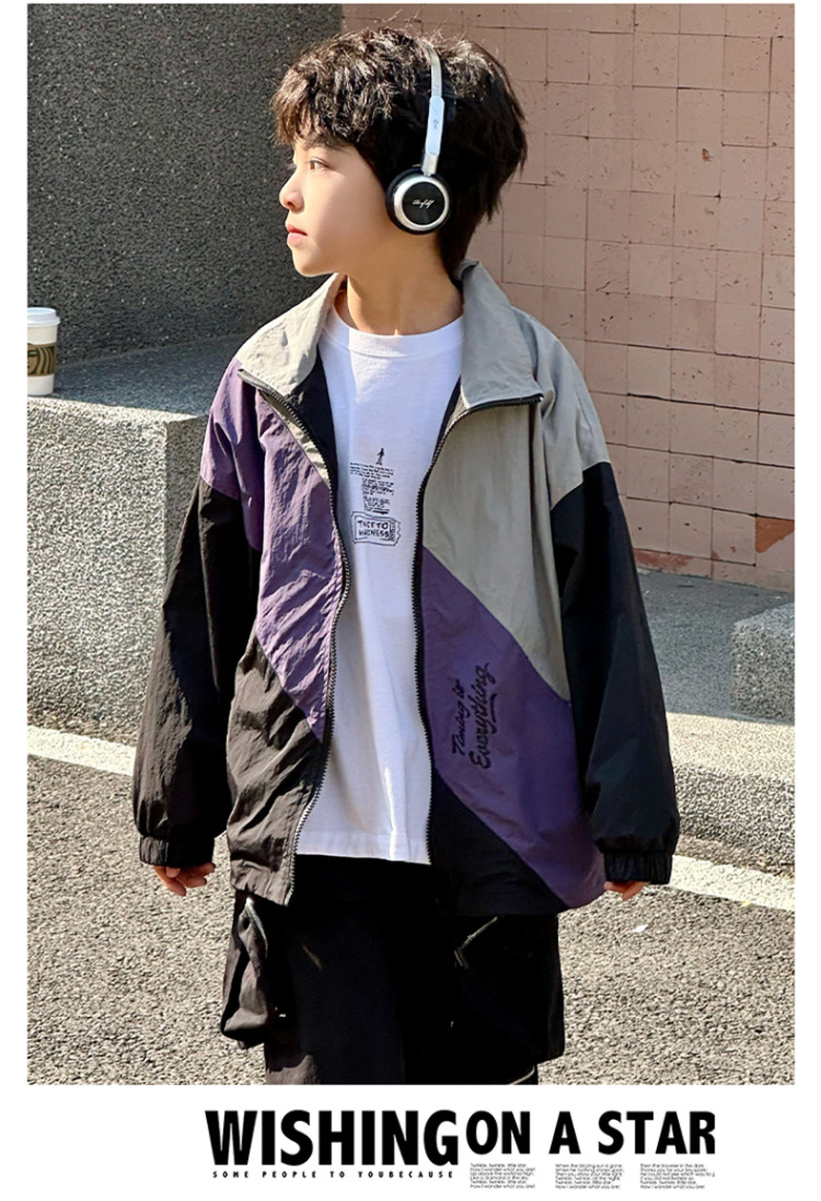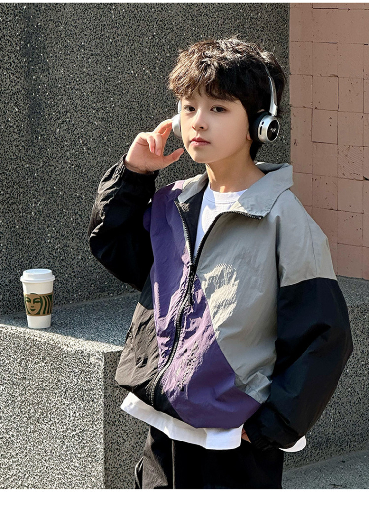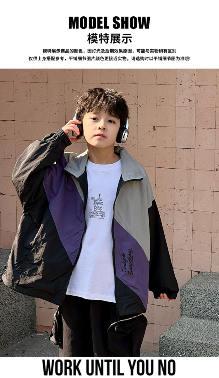 어린이 콘트라스트 탑 2025 봄 새로운 외국 스타일의 세련된 튀김 거리 소년 얇은 코트, 바지스토어 가기