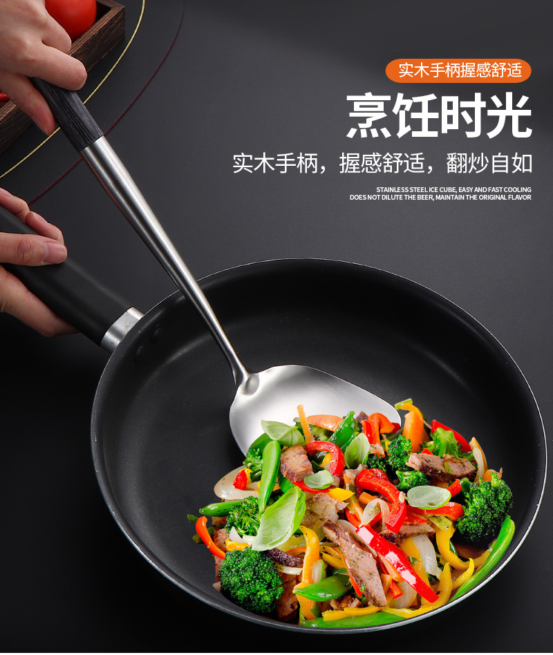 국경 304 스테인레스 스틸 나무 손잡이 주방 용품 세트 요리 도구 주걱 수프 숟가락 고기 포크 국수 숟가락 큰 누출스토어 가기