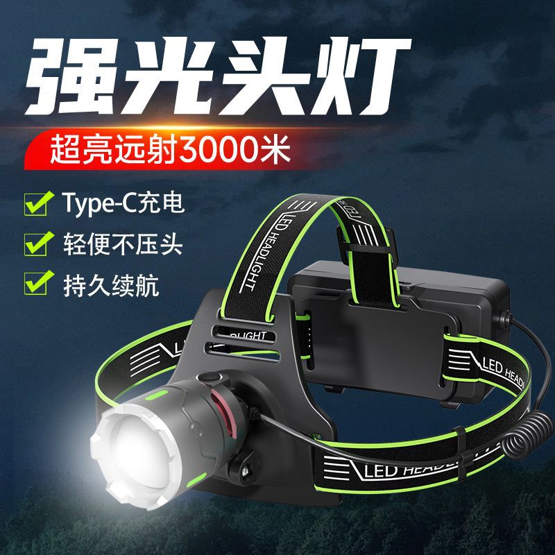 국경 간 새로운 버스트 장거리 헤드 라이트 충전식 슈퍼 밝은 긴 지구력 헤드 장착 야외 조명 야간 낚시 헤드 라이트스토어 가기