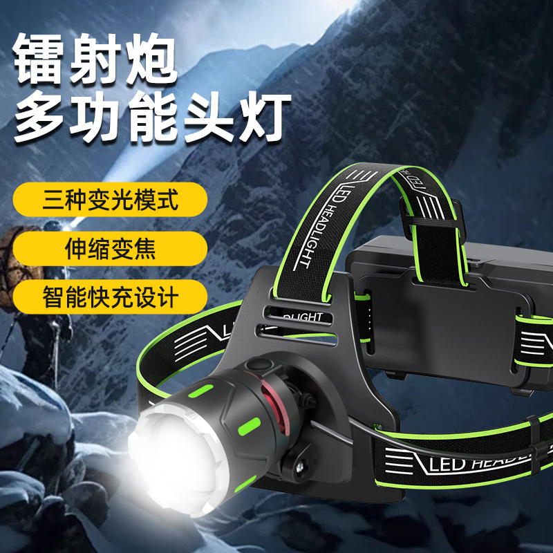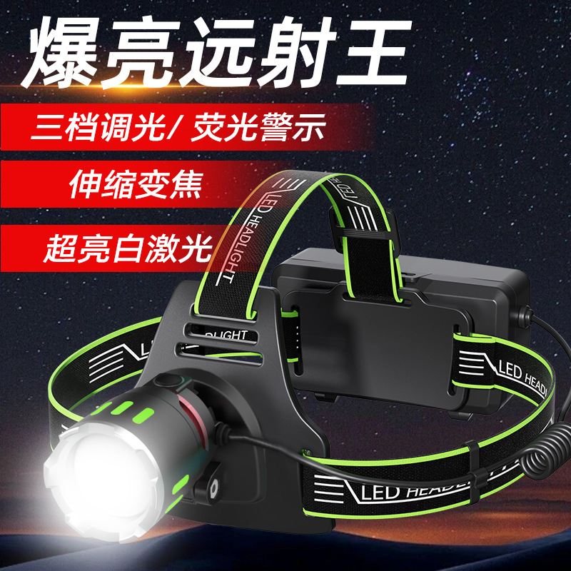 국경 간 새로운 버스트 장거리 헤드 라이트 충전식 슈퍼 밝은 긴 지구력 헤드 장착 야외 조명 야간 낚시 헤드 라이트