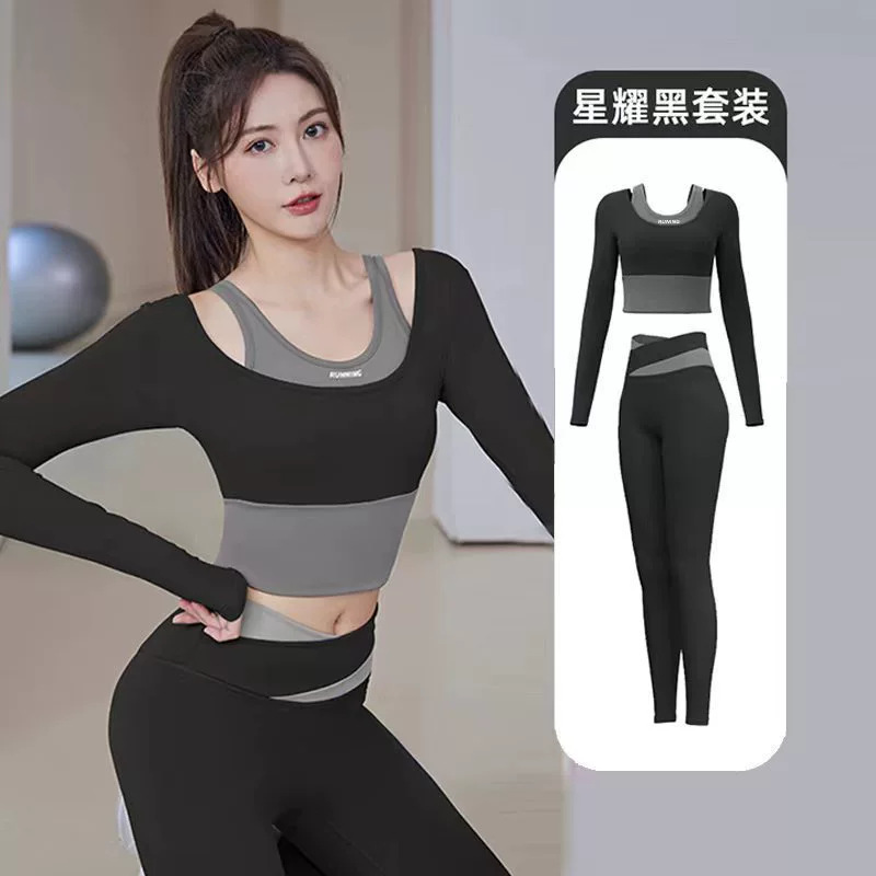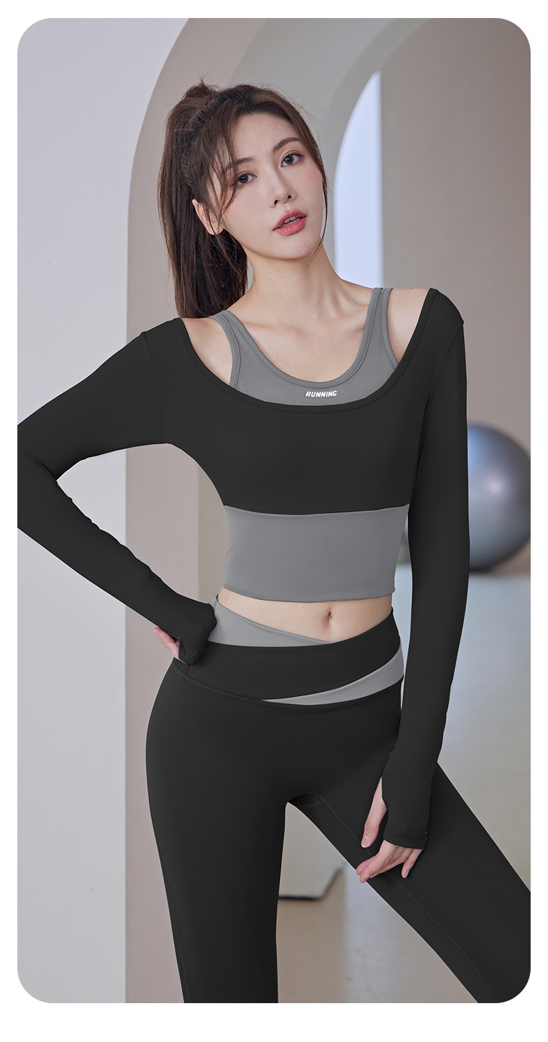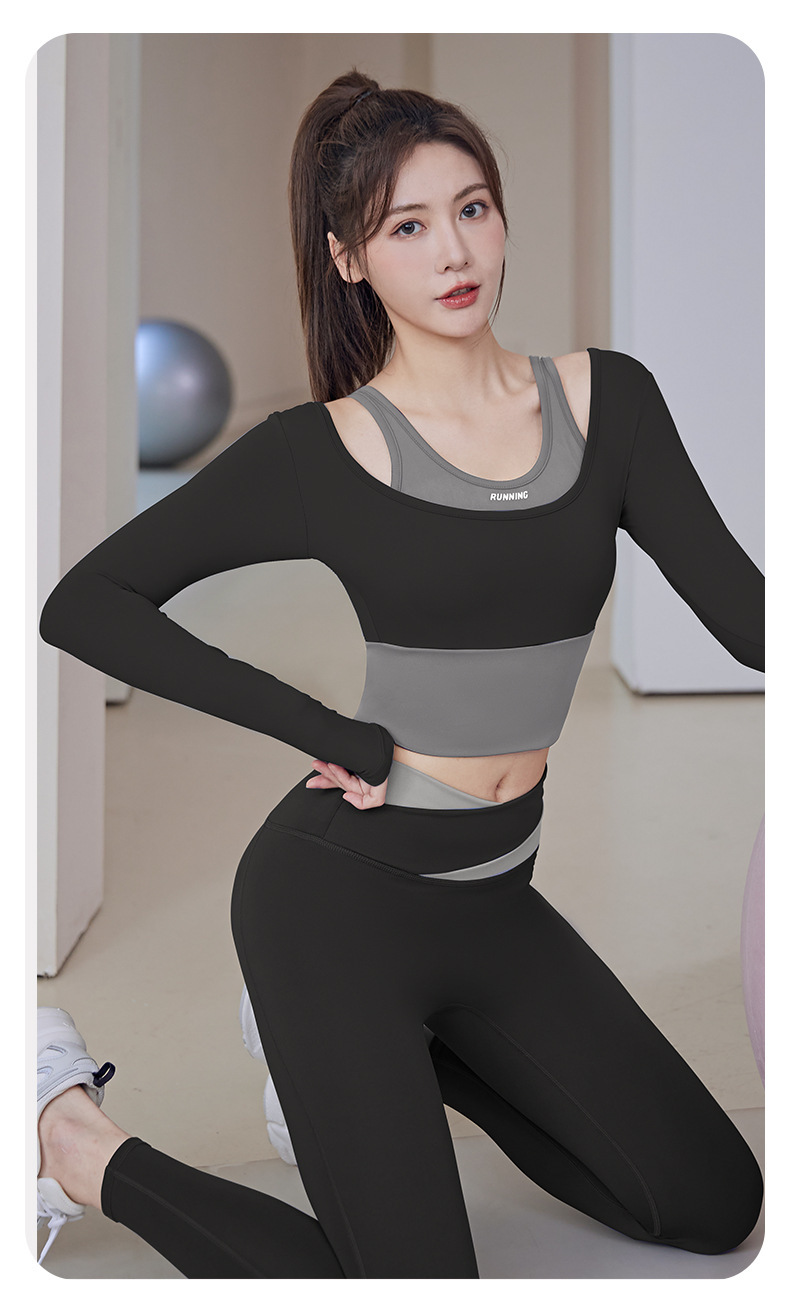 룰루 요가복 속건성 러닝 스포츠 풀오버 배꼽 노출 바디 쉐이핑 탑 가짜 투피스 타이츠 긴팔 피트니스웨어