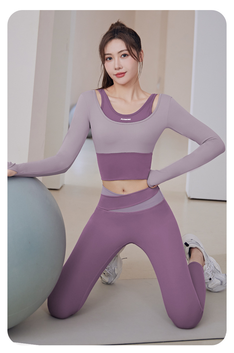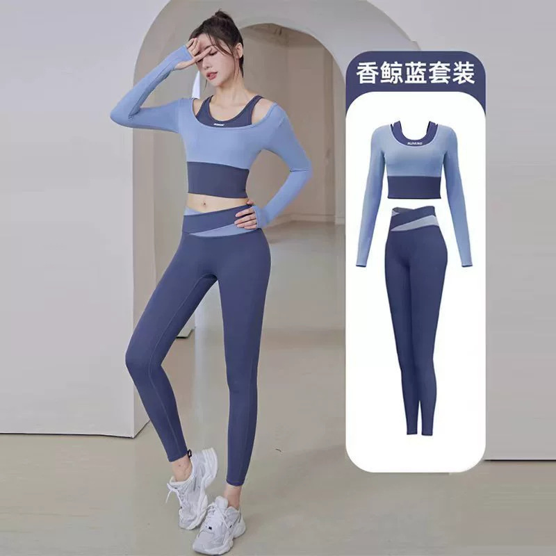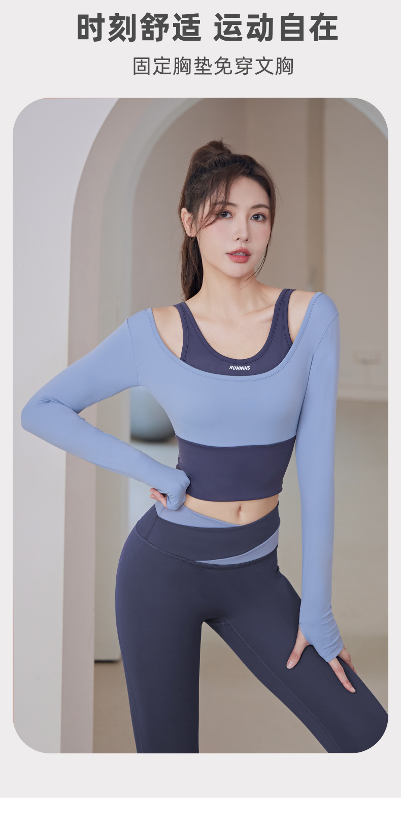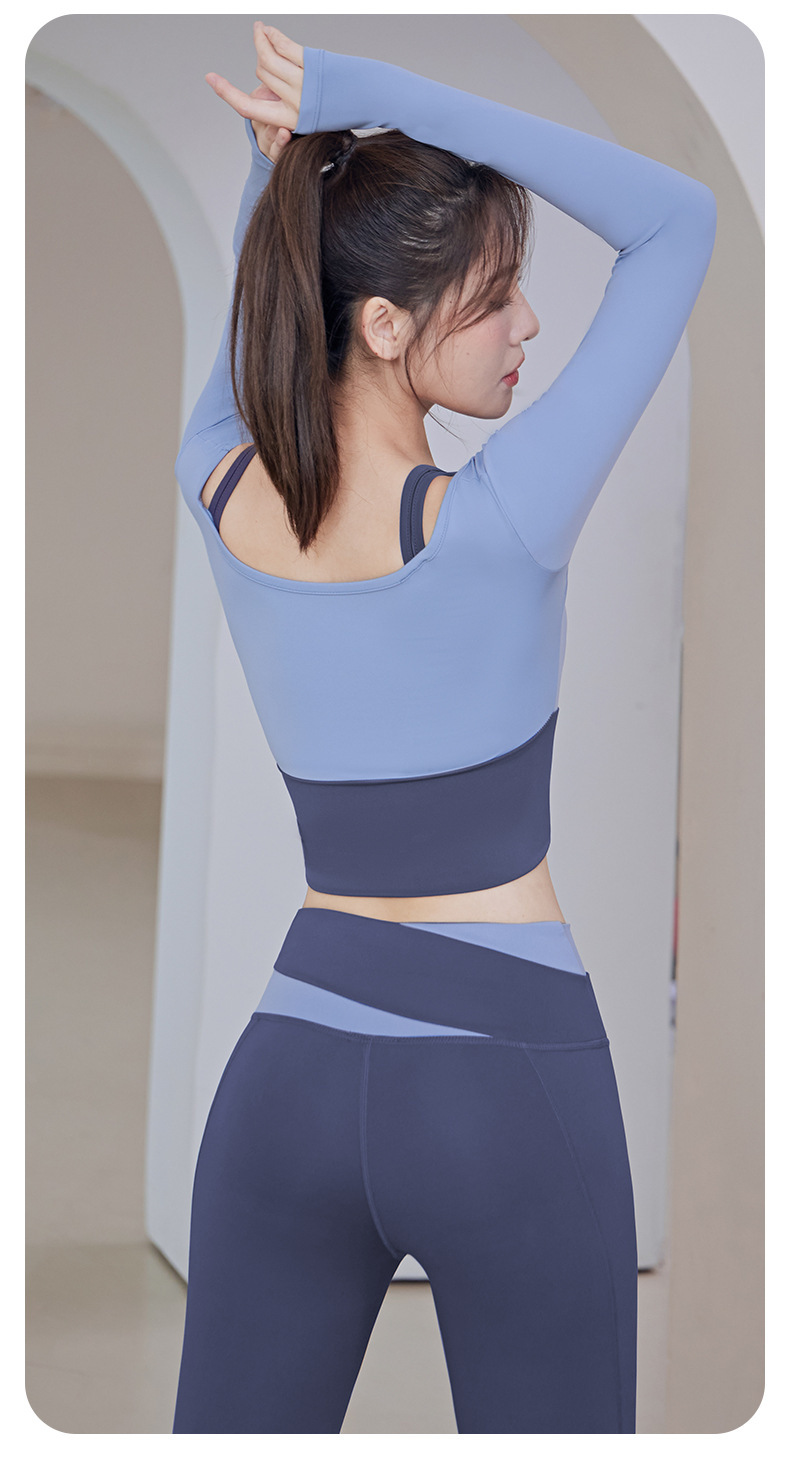룰루 요가복 속건성 러닝 스포츠 풀오버 배꼽 노출 바디 쉐이핑 탑 가짜 투피스 타이츠 긴팔 피트니스웨어