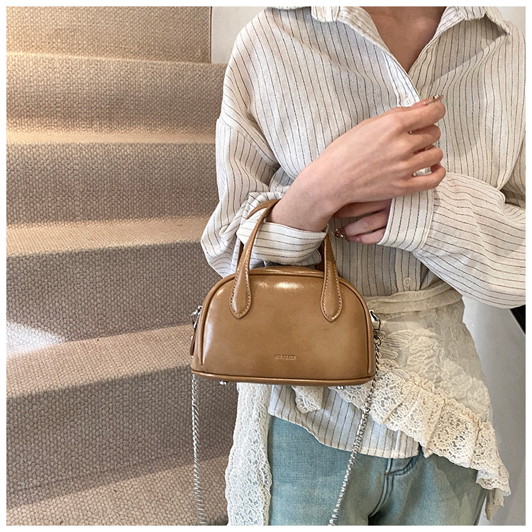 2025 봄 새로운 보스턴 Cowhide 가방 여성 가방 캐주얼 패션 레트로 어깨 크로스 바디 가죽 핸드백스토어 가기