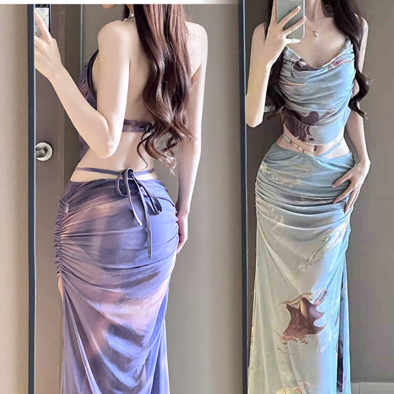 태국 싼야 긴 치마 휴가 수영복 여성 4 종 세트 높은 허리 벨리 커버 슬림 온천 수영복 하이 스타일 스파이스 걸 스타일