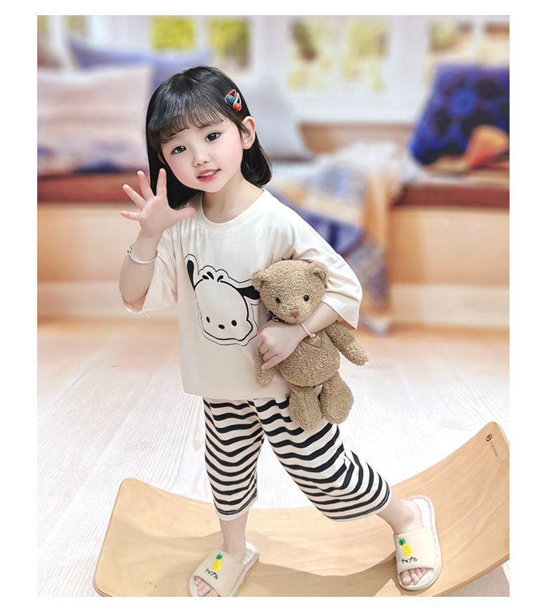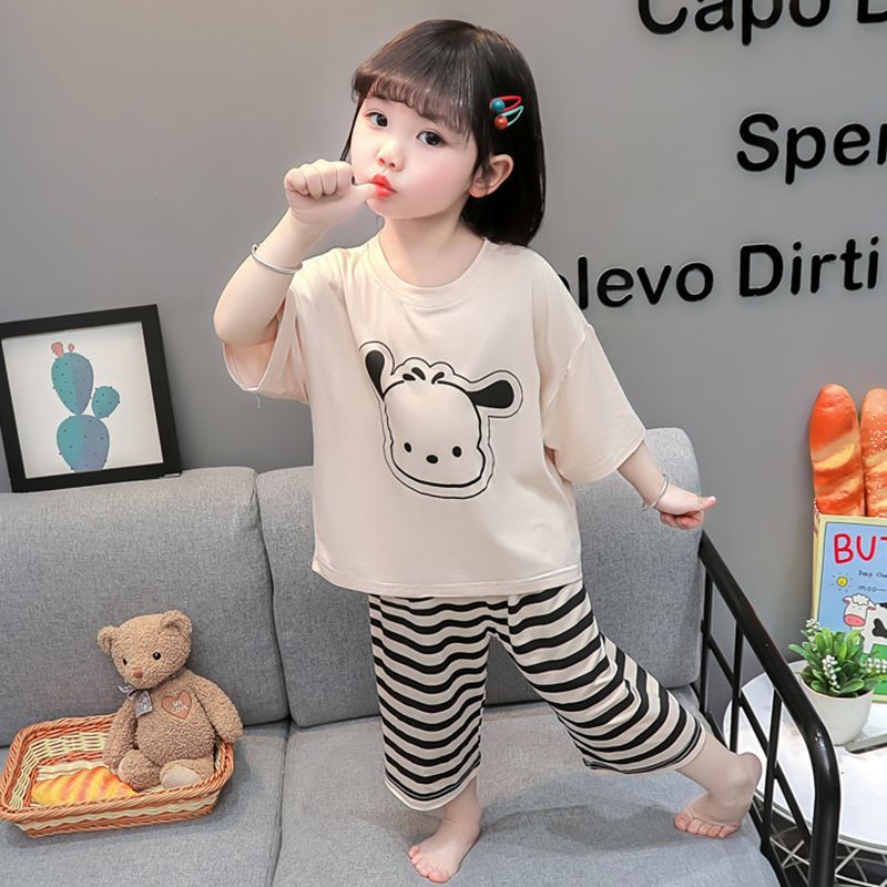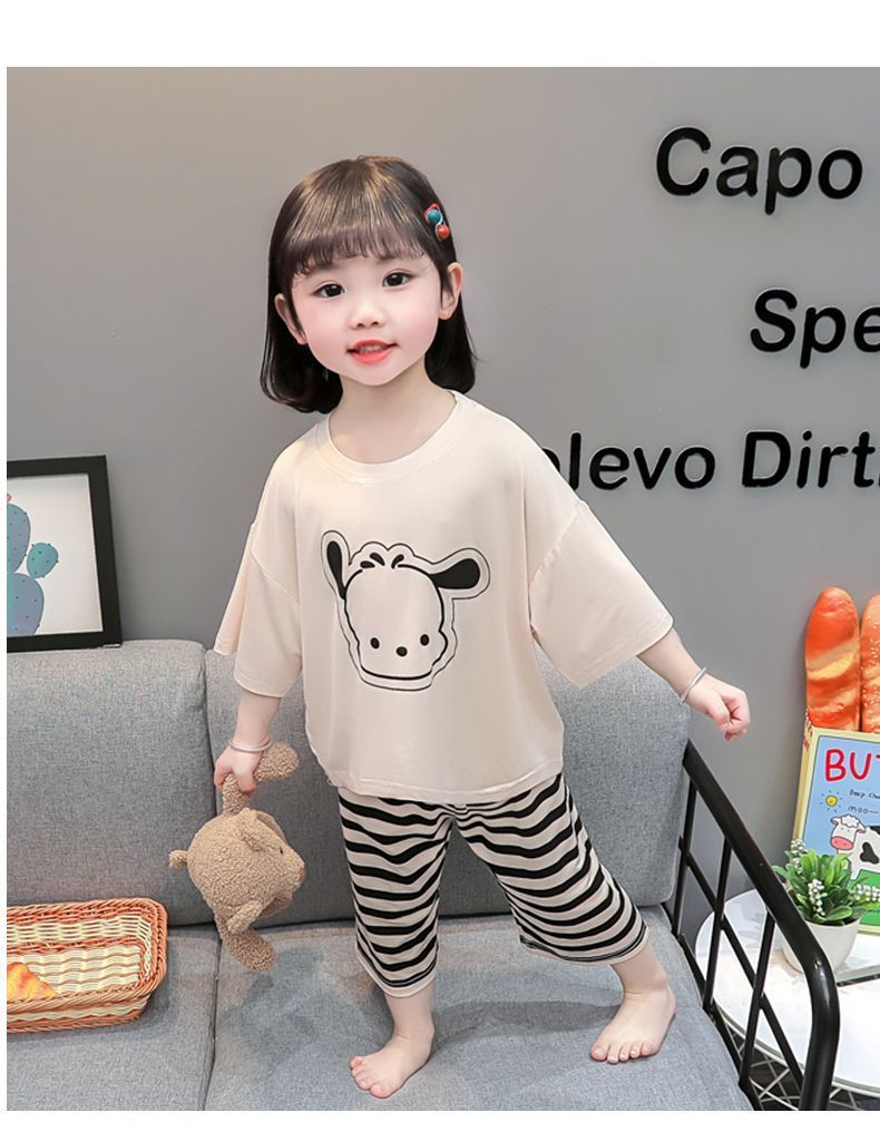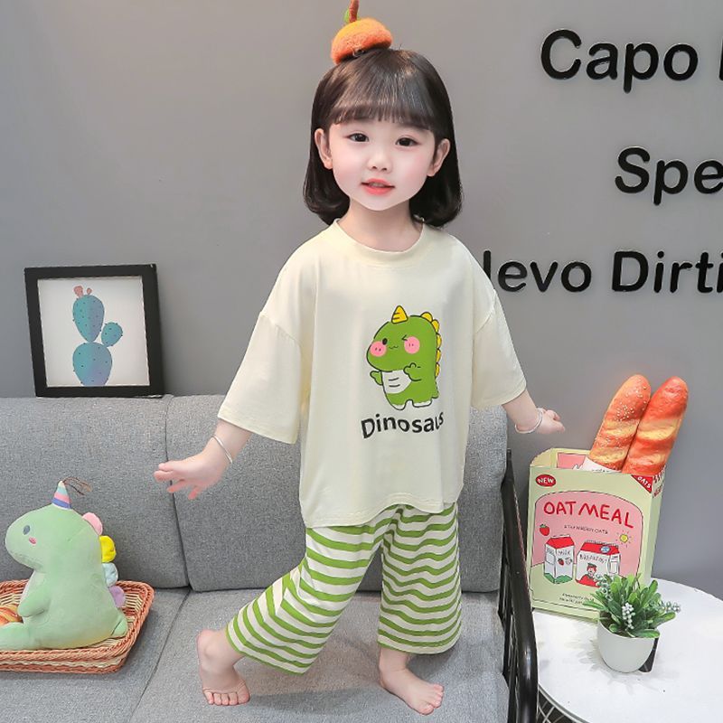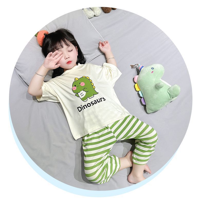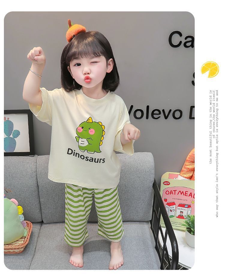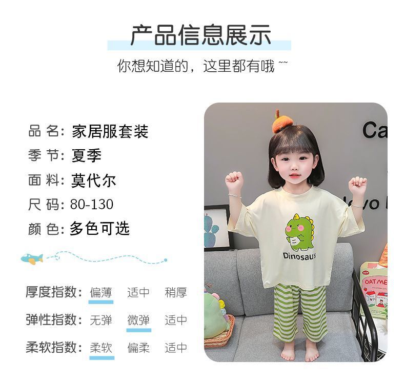 어린이 여름 의류 모달 홈 의류 세트 얇은 만화 잠옷 느슨한 소년 소녀 아기 에어컨 옷스토어 가기