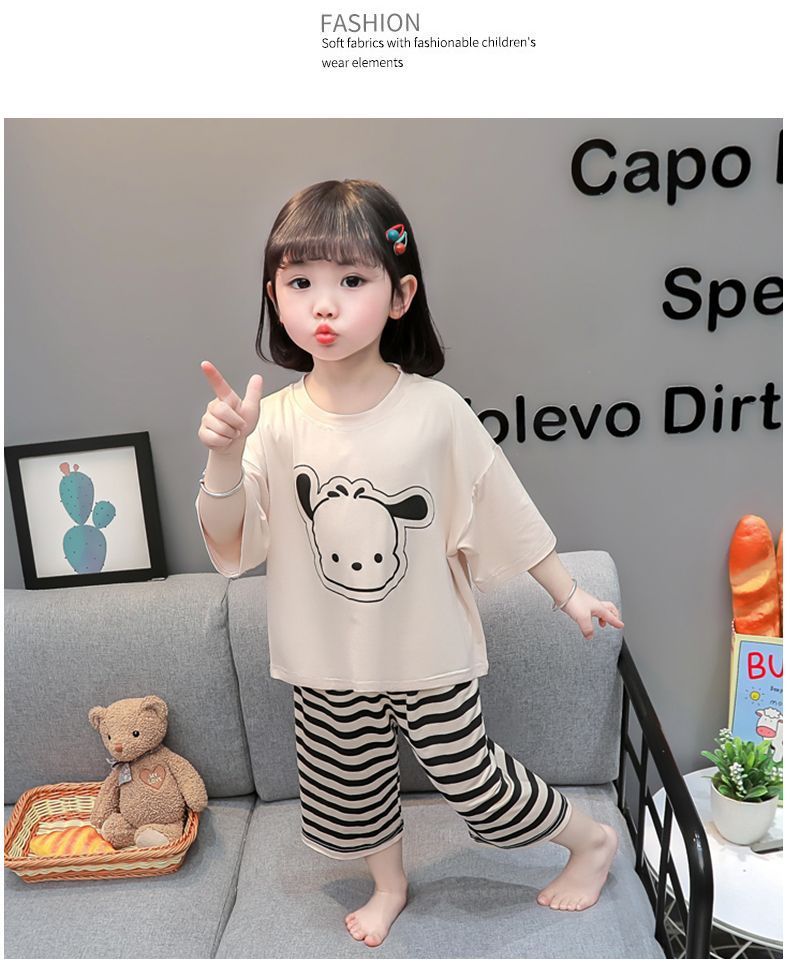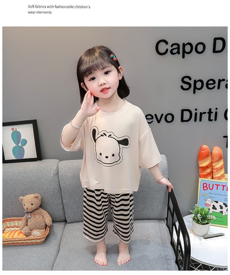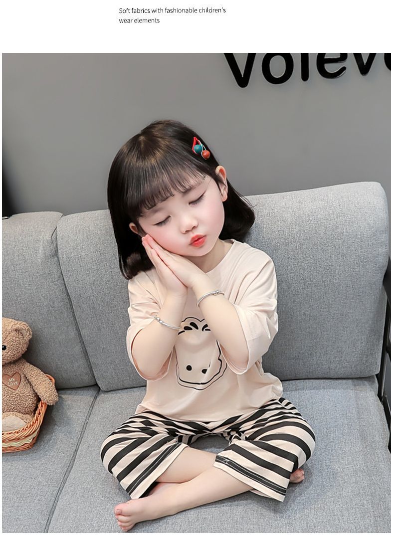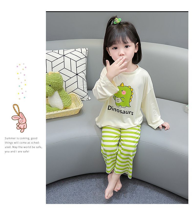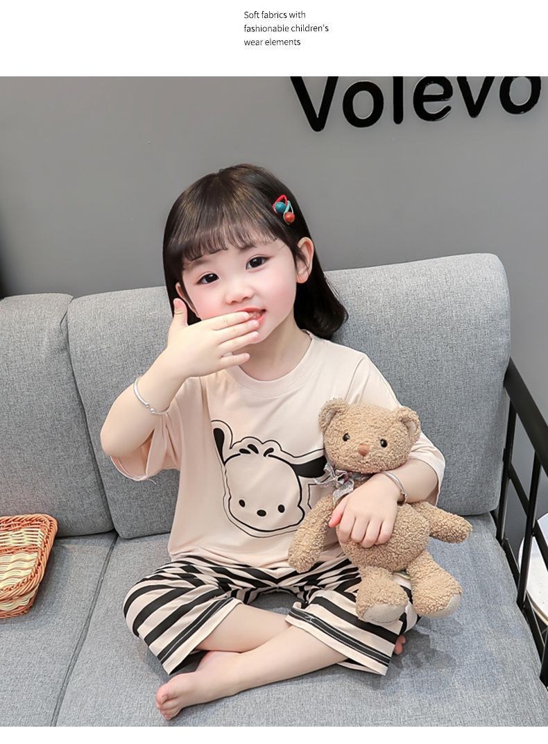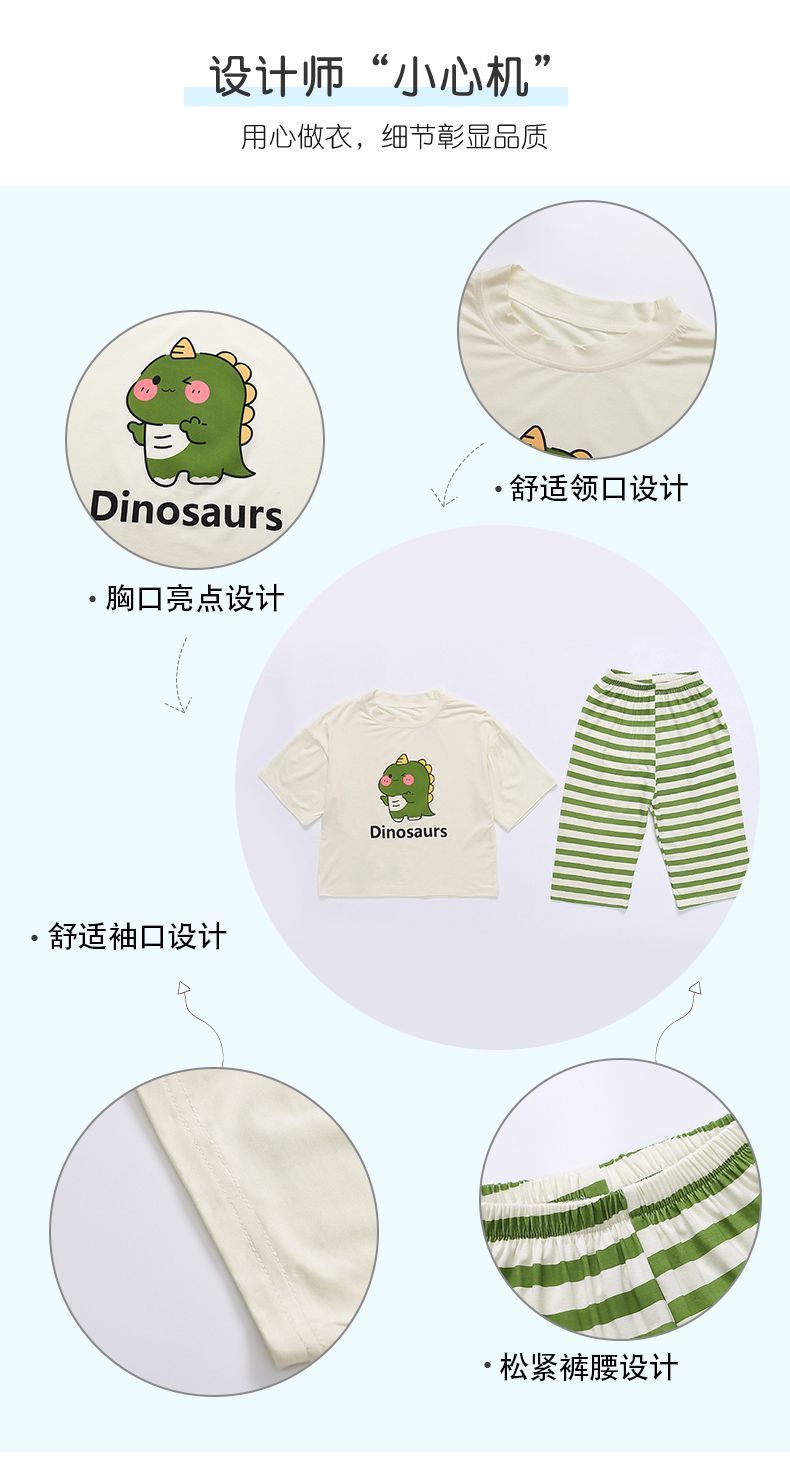 어린이 여름 의류 모달 홈 의류 세트 얇은 만화 잠옷 느슨한 소년 소녀 아기 에어컨 옷