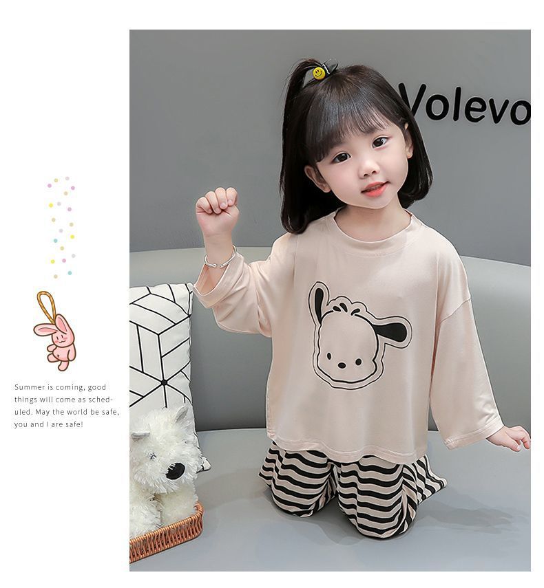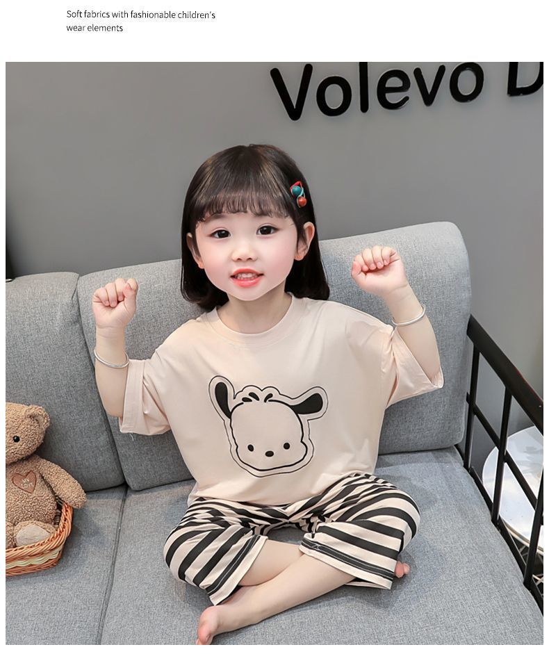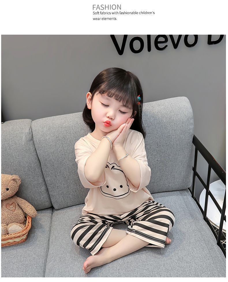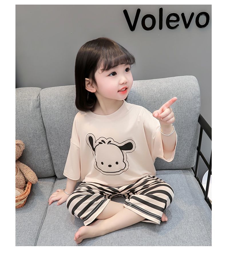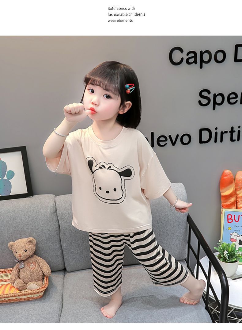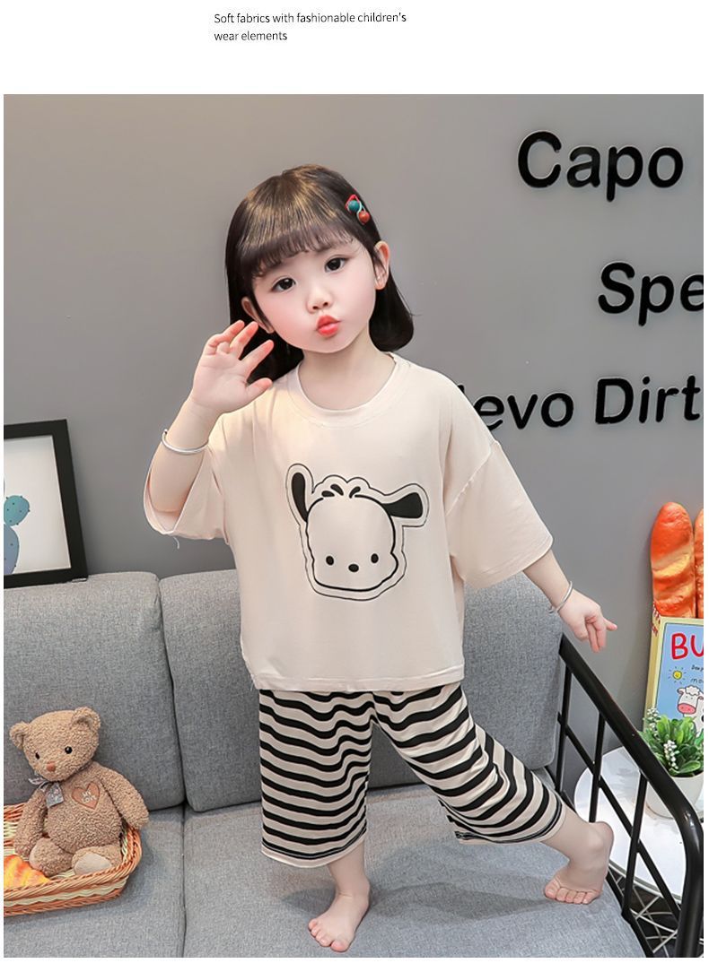 어린이 여름 의류 모달 홈 의류 세트 얇은 만화 잠옷 느슨한 소년 소녀 아기 에어컨 옷