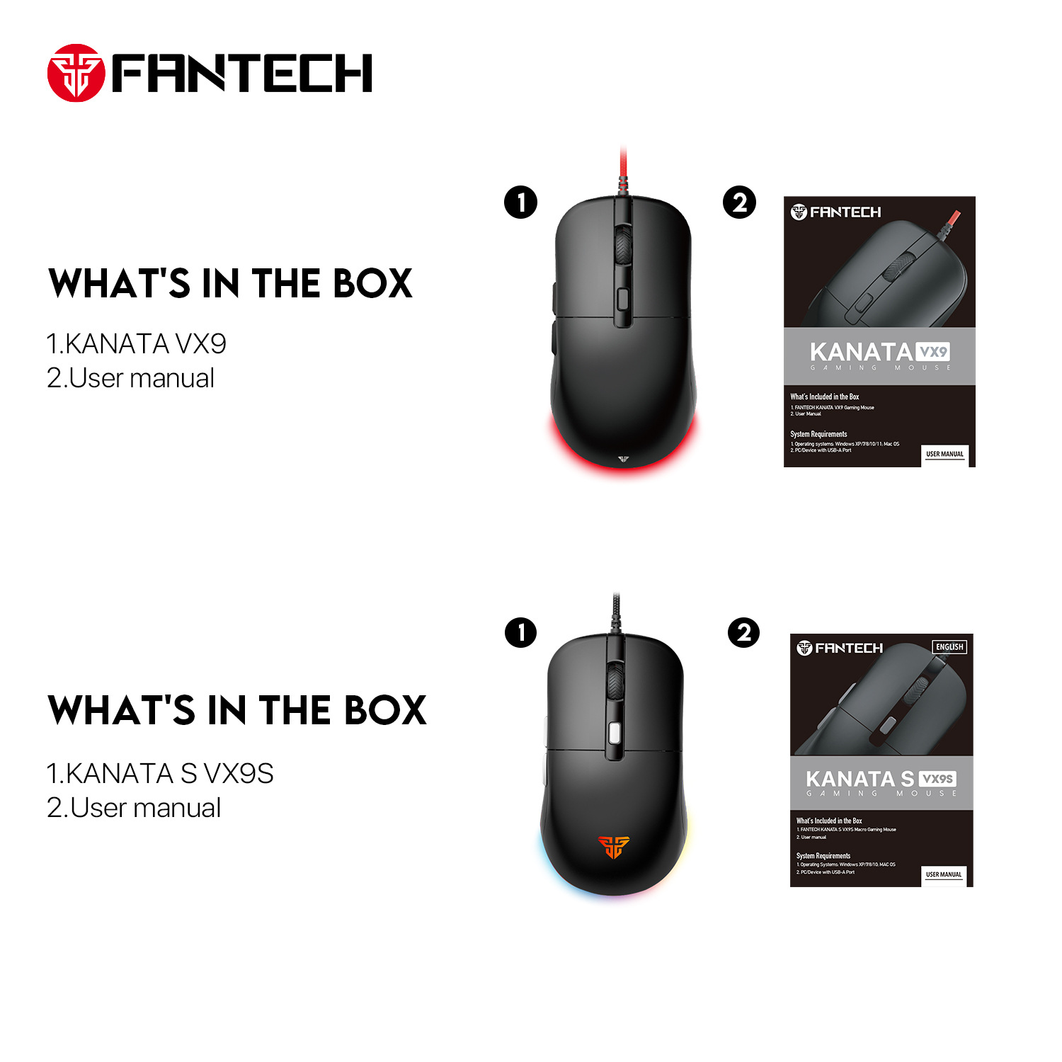 FANTECH KANATA S VX9S 유선 게임 마우스 7200DPI HUANO 10M