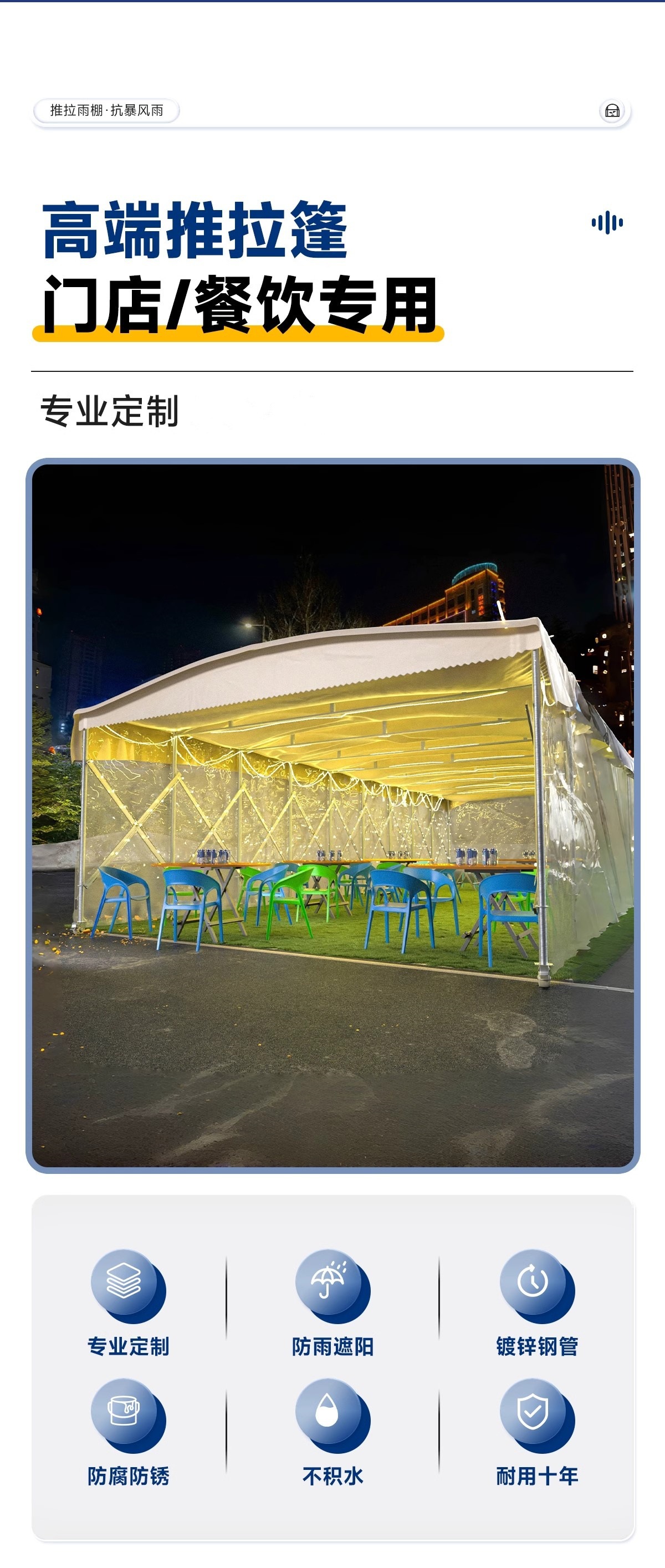 모바일 차양 푸시 풀 야외 창고 야외 캐노피 분위기 활동 캐노피 주차 창고 바베큐 병영