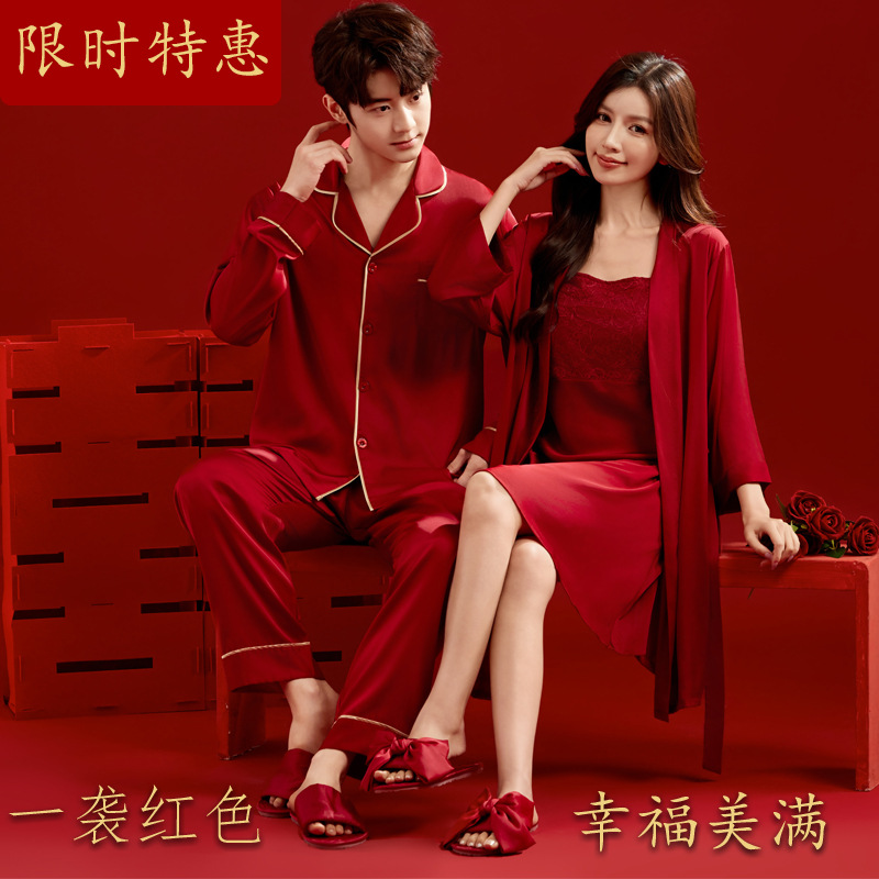 웨딩 파자마 여성 신부 모닝 로브 웨딩 세트 한 남자와 한 여자 여름 고급 아이스 실크 퇴색하지 않는 실키 감각