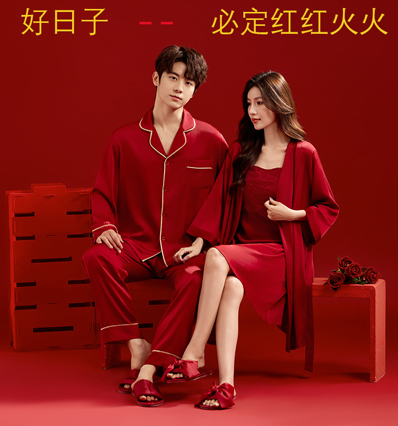 웨딩 파자마 여성 신부 모닝 로브 웨딩 세트 한 남자와 한 여자 여름 고급 아이스 실크 퇴색하지 않는 실키 감각스토어 가기