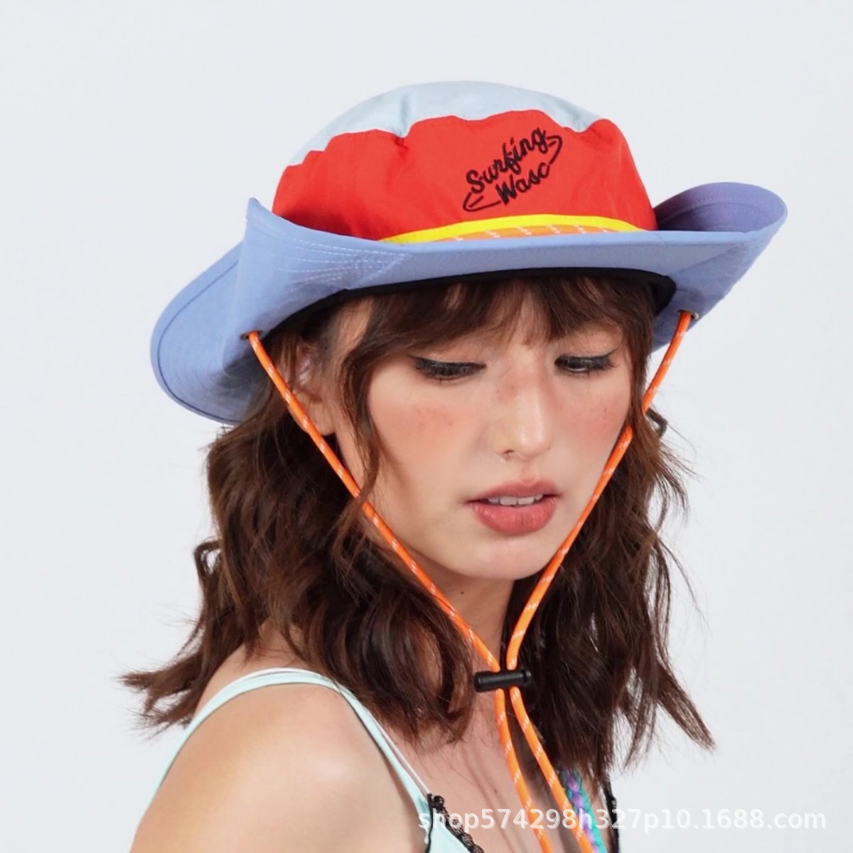 모자 여성 인터넷 연예인 등산 컬러 블록 어부 모자 패치 워크 여름 야외 서양 도파민 트렌드 대외 무역 크로스 보더 아마존스토어 가기