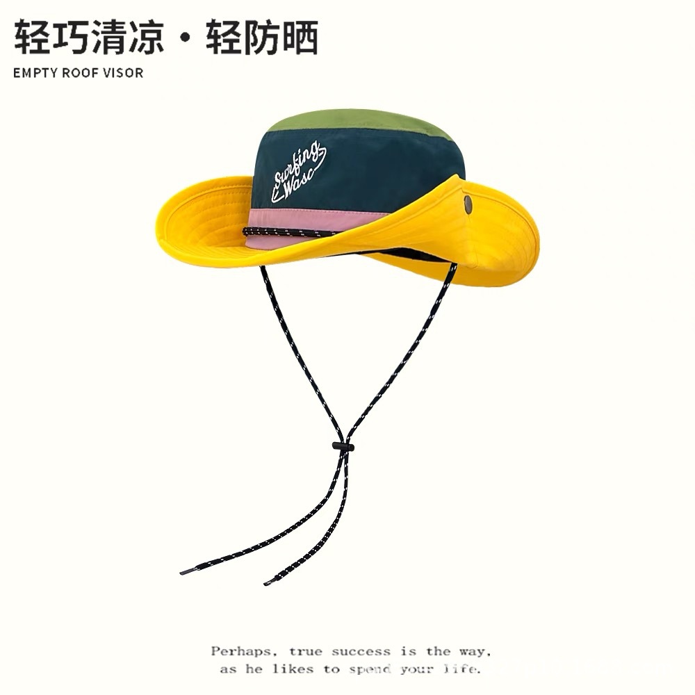 모자 여성 인터넷 연예인 등산 컬러 블록 어부 모자 패치 워크 여름 야외 서양 도파민 트렌드 대외 무역 크로스 보더 아마존