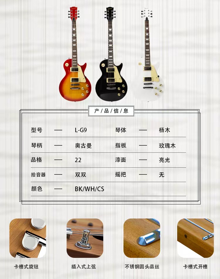 뮤지컬 악기 도매 공장 포플러 일렉트릭 기타 메이플 LP 세트 전자 일렉트릭 기타 메탈 록 기타스토어 가기