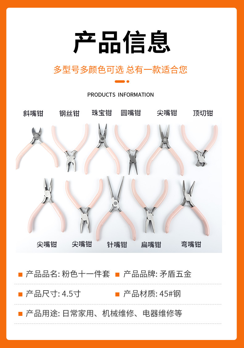 핑크 11 피스 세트 스몰 사이즈 세트 DIY 수제 보석 펜치 뾰족한 입 주얼리 펜치 대각선 펜치 라운드 코 펜치