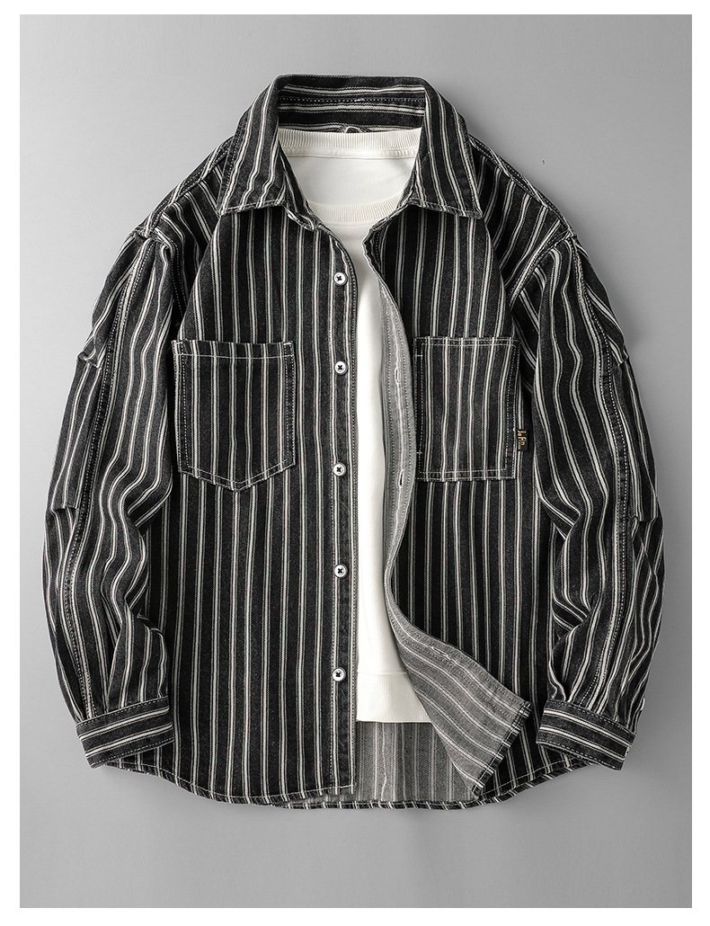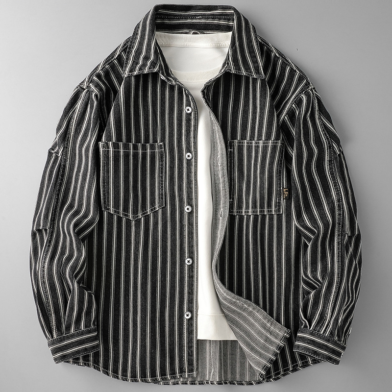 트렌디 한 브랜드 씻은 줄무늬 셔츠 재킷 남자 2025 봄 여름 가을 새로운 일본 캐주얼 도시 소년 셔츠스토어 가기