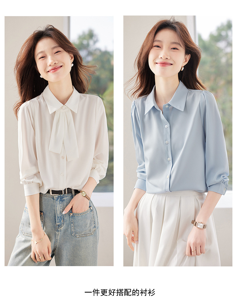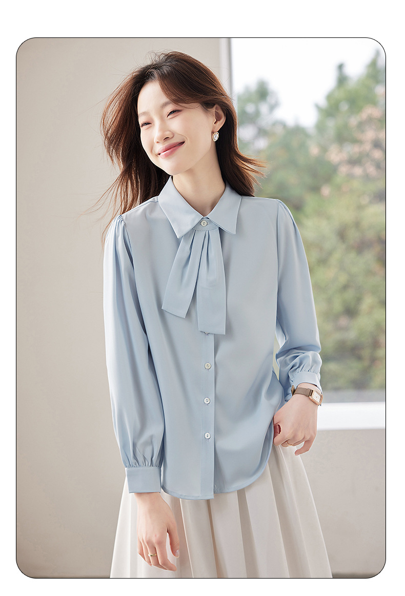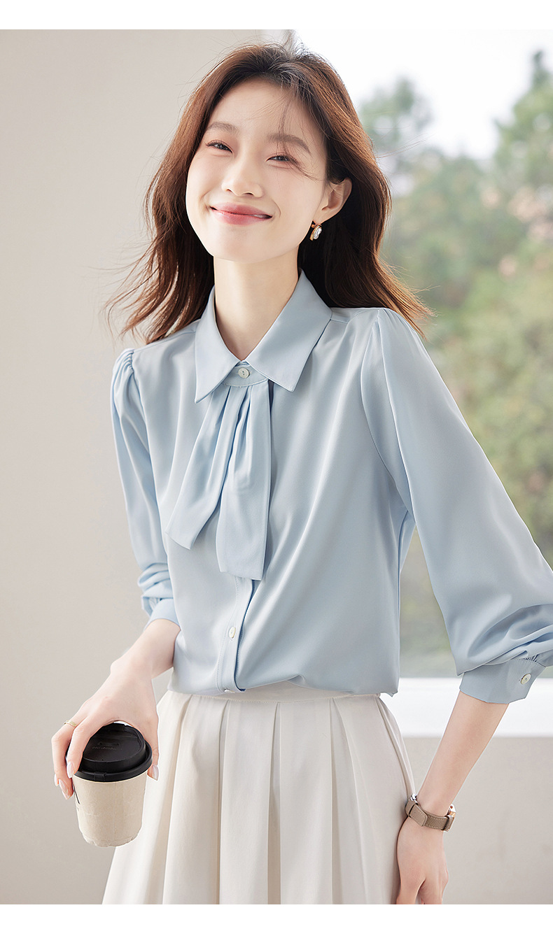 하이 엔드 라이트 럭셔리 아세트산 새틴 블루 셔츠 여성 톱 2025 새로운 봄과 가을 활 쉬폰 셔츠스토어 가기