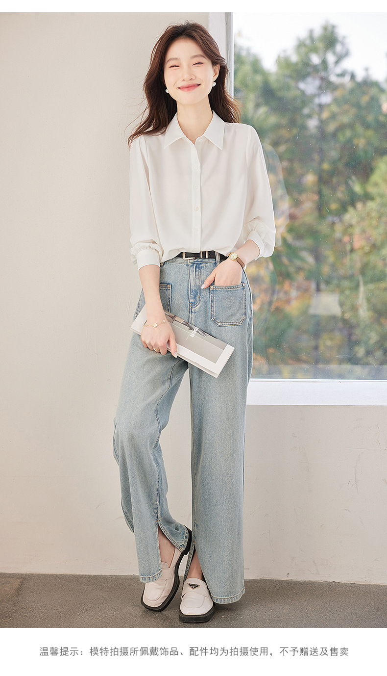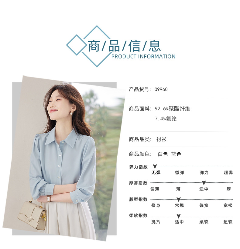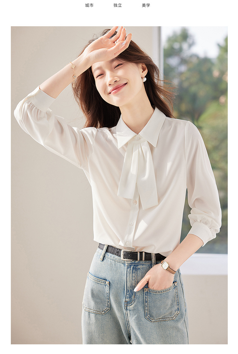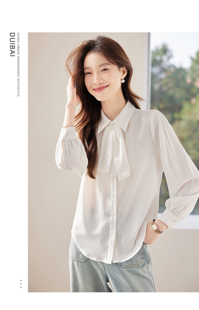 하이 엔드 라이트 럭셔리 아세트산 새틴 블루 셔츠 여성 톱 2025 새로운 봄과 가을 활 쉬폰 셔츠스토어 가기