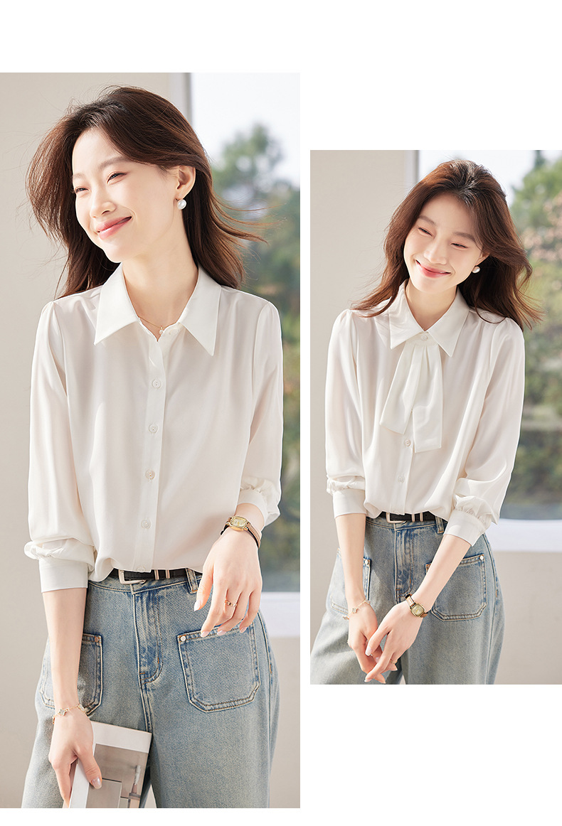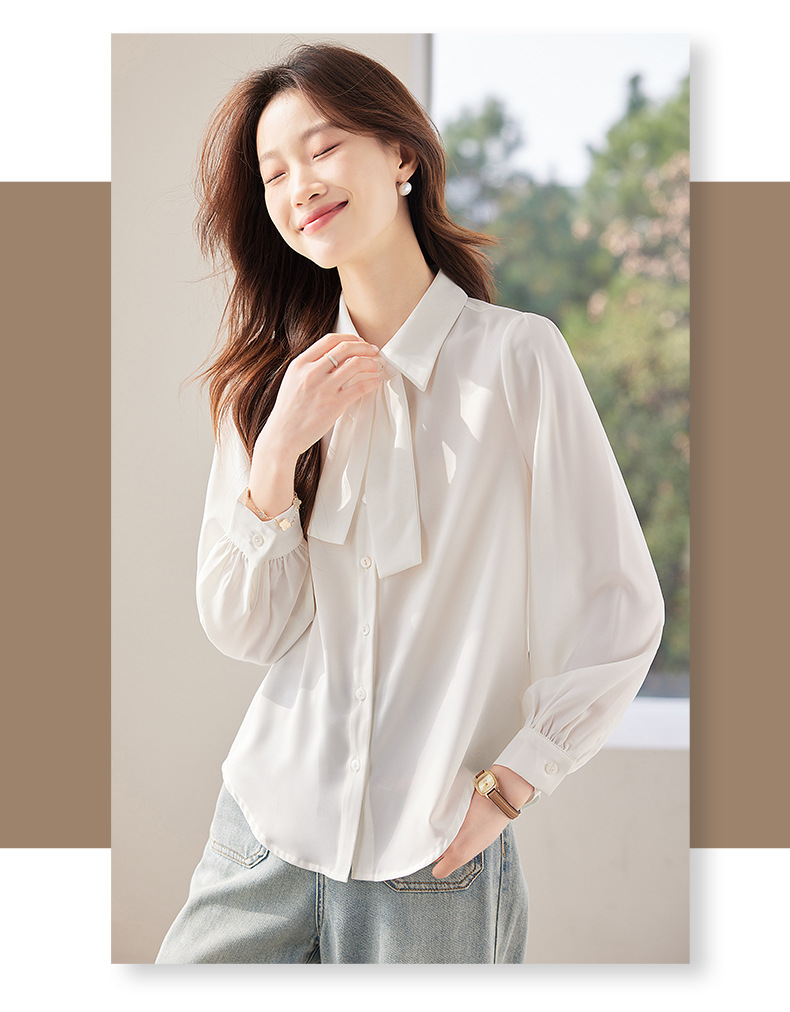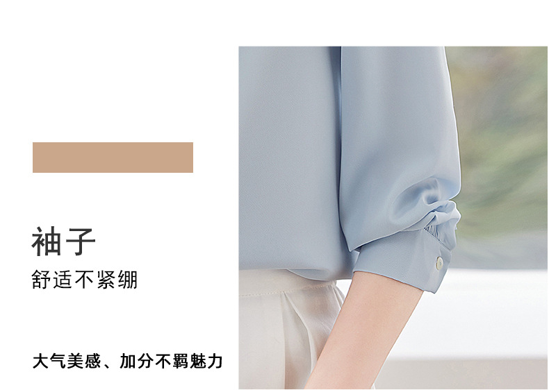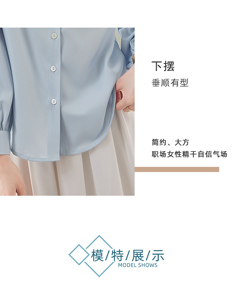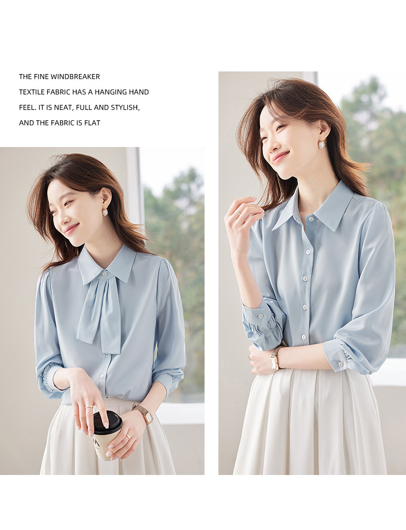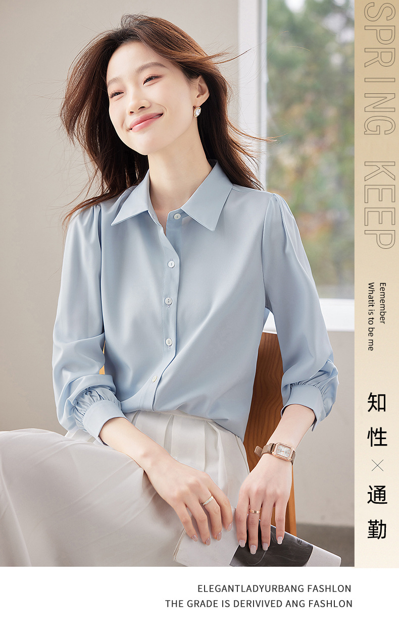 하이 엔드 라이트 럭셔리 아세트산 새틴 블루 셔츠 여성 톱 2025 새로운 봄과 가을 활 쉬폰 셔츠