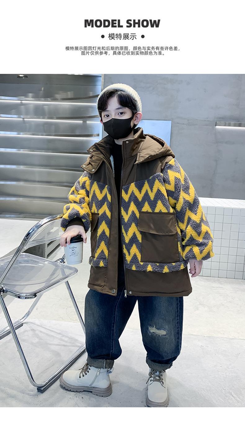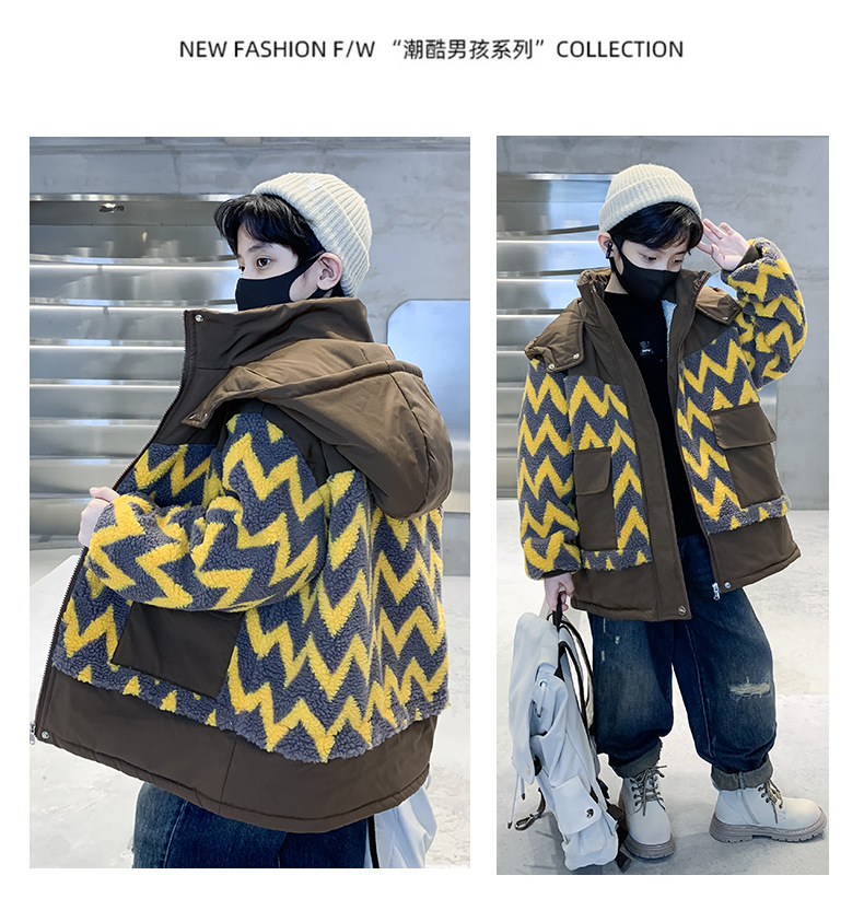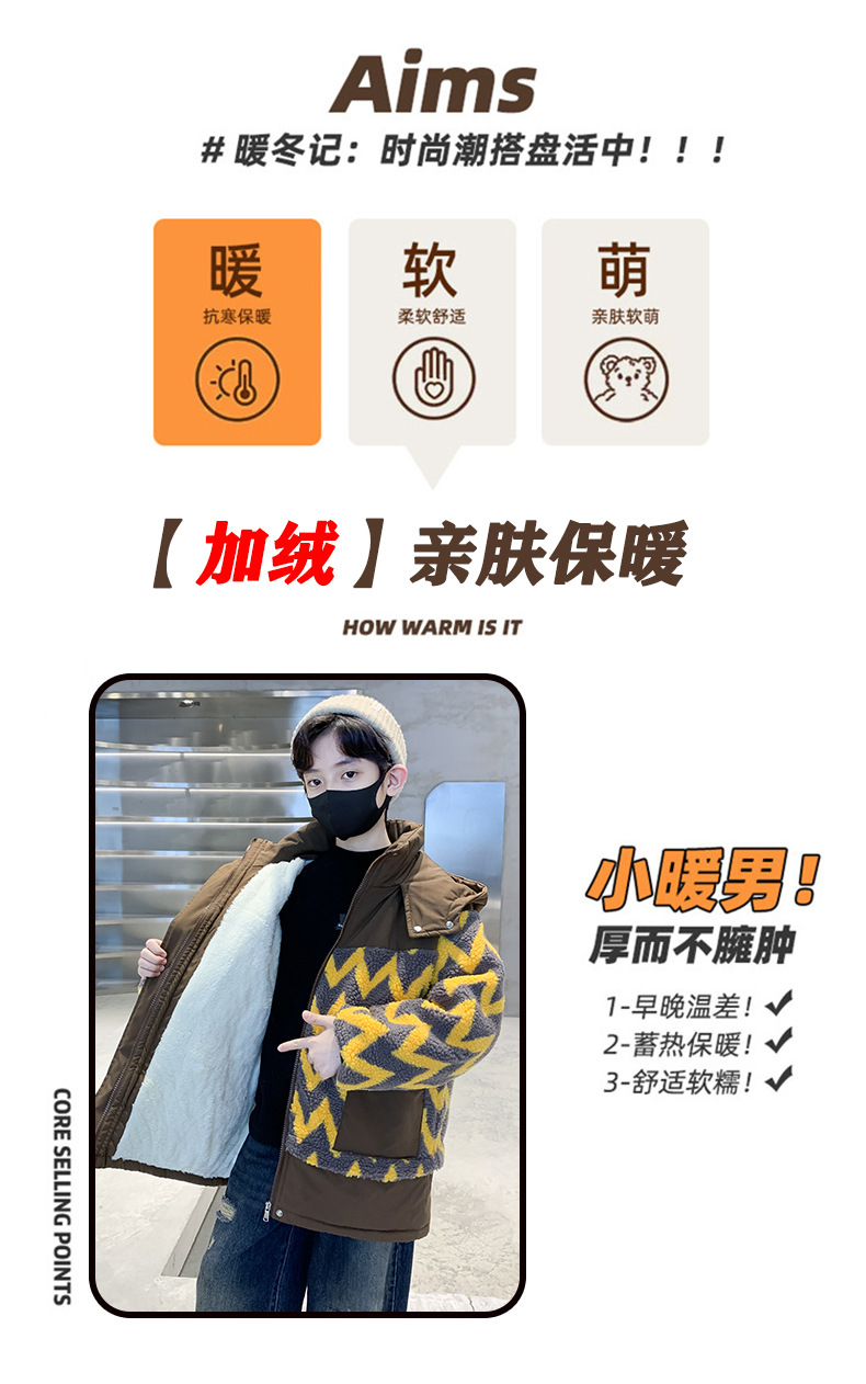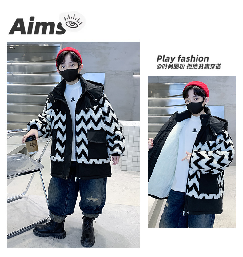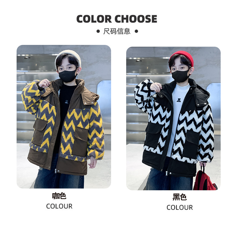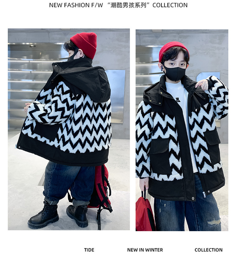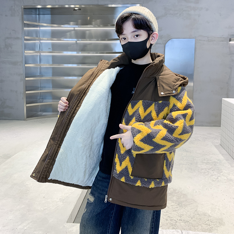 아동용 겨울옷, 두꺼운 면, 따뜻한 후드 모피 스웨터, 남아용 면 코트, 중대형 아동용 후드 두꺼운 멋진 코트스토어 가기