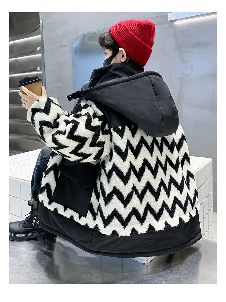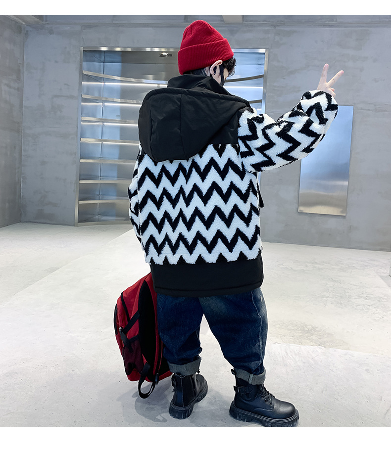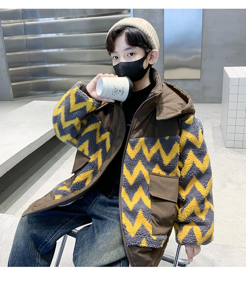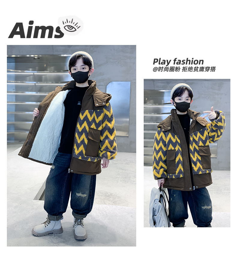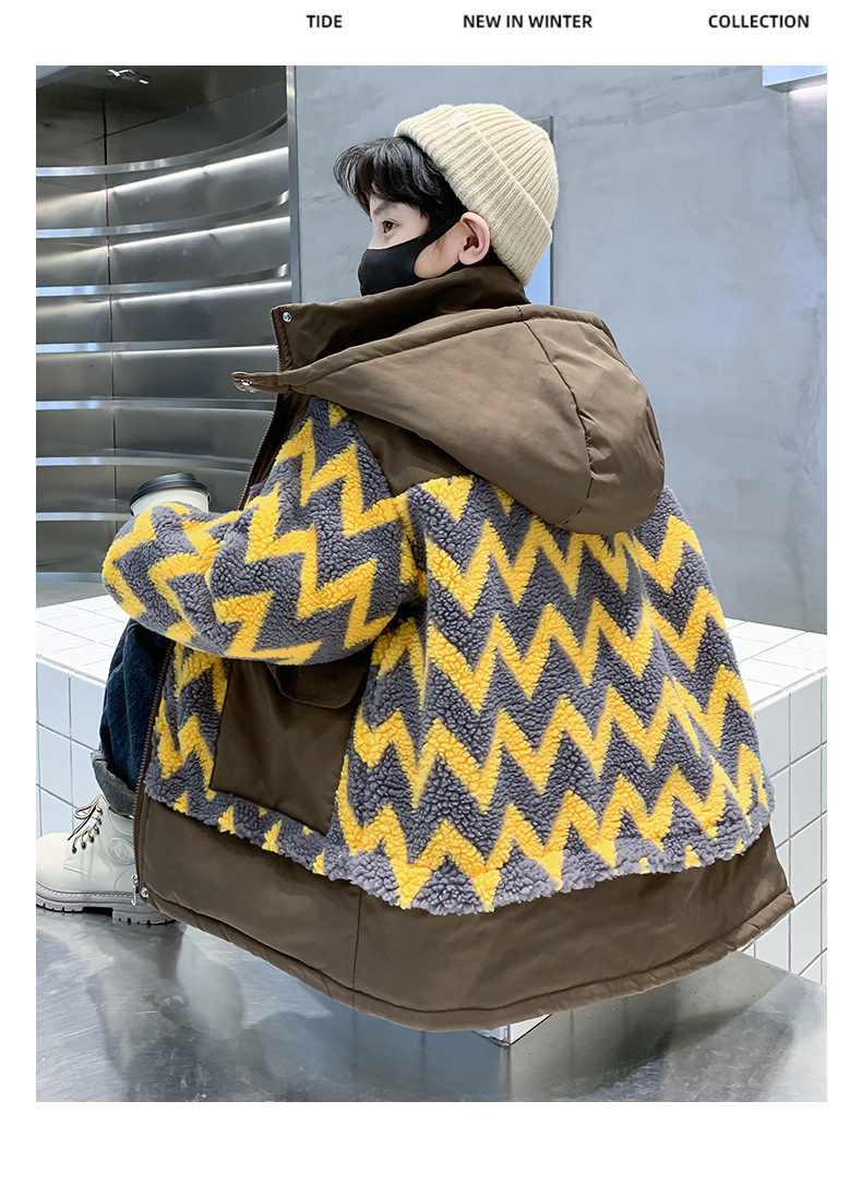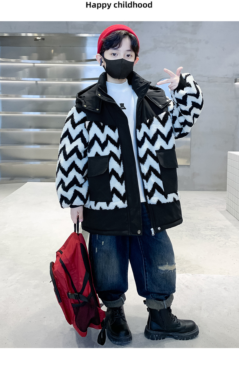 아동용 겨울옷, 두꺼운 면, 따뜻한 후드 모피 스웨터, 남아용 면 코트, 중대형 아동용 후드 두꺼운 멋진 코트스토어 가기