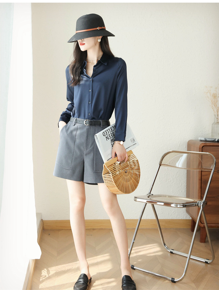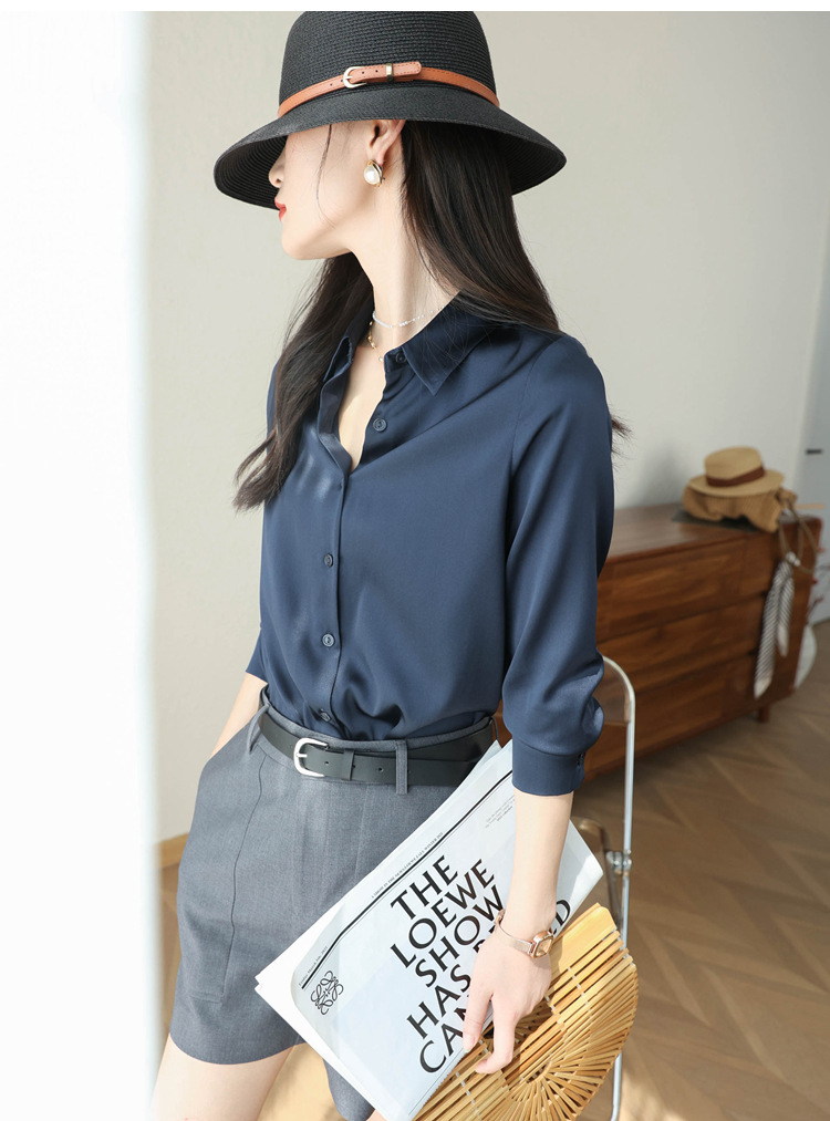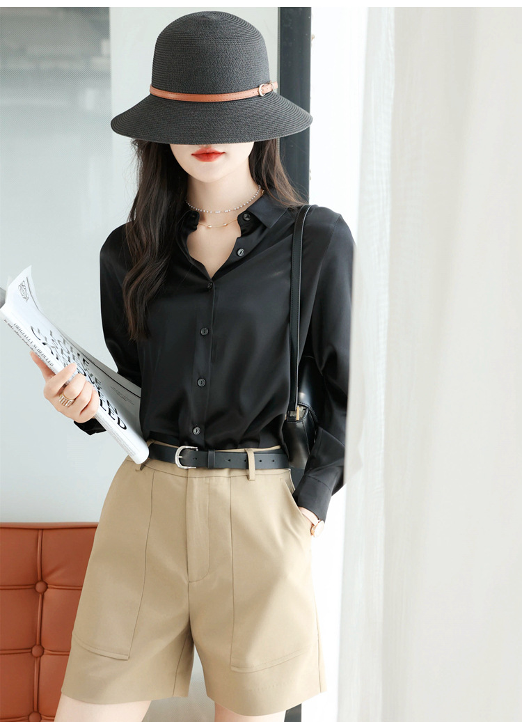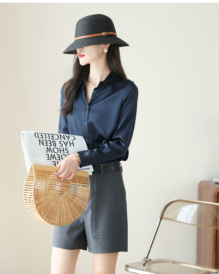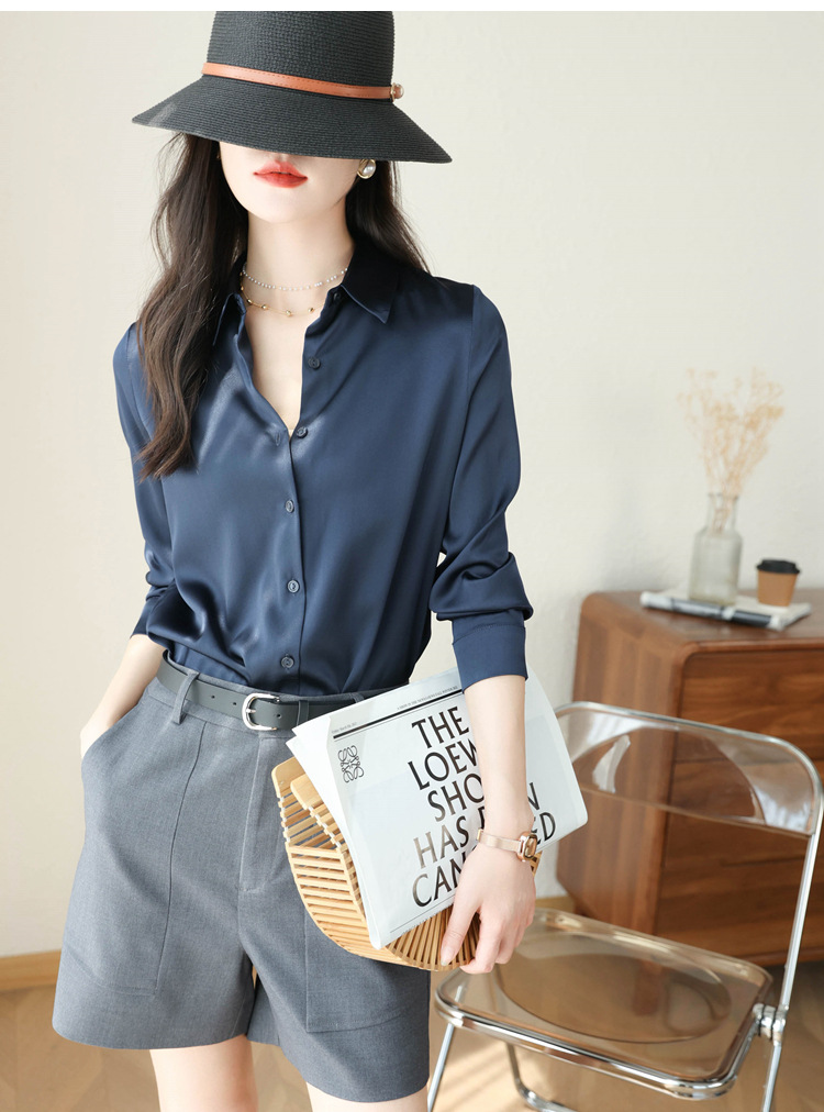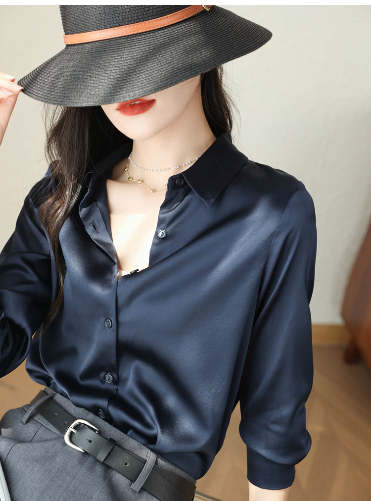 많은 재고 새틴 셔츠 여자 봄과 가을 하이 엔드 올 매치 OL 스타일 느슨한 슬리밍 긴소매 Acetic Commuter 셔츠스토어 가기