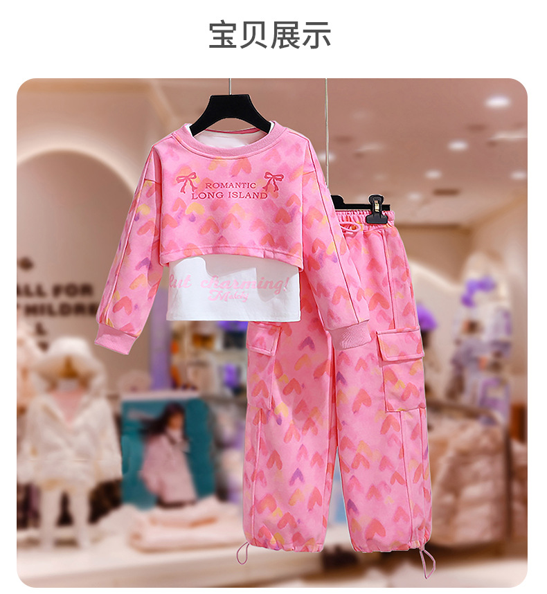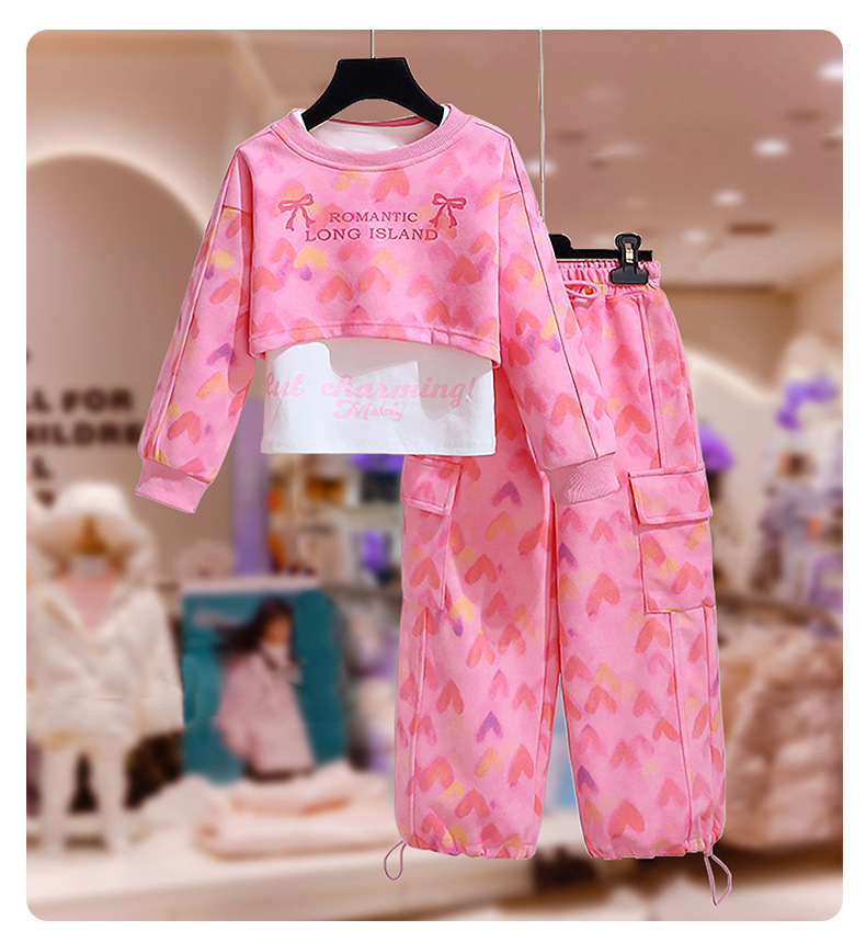 소녀 조끼 스웨터 세트 봄과 가을 새로운 인터넷 연예인 스포츠 중대형 어린이 캐주얼 느슨한 가을 소녀 3 종 세트스토어 가기