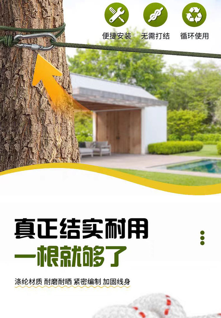 특수 카키 스틸 와이어 코어 나일론 로프 빨랫줄 대담한 야외 다기능 휴대용 로프 비 천공 마모 방지스토어 가기