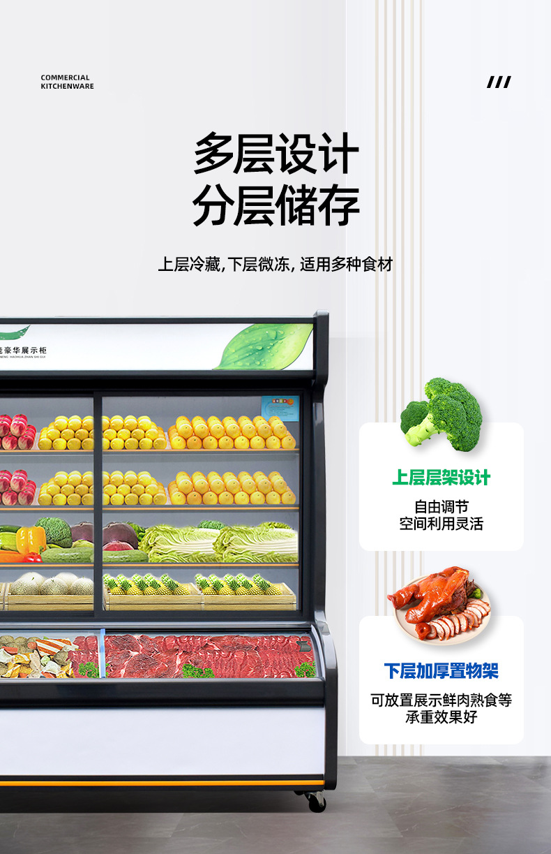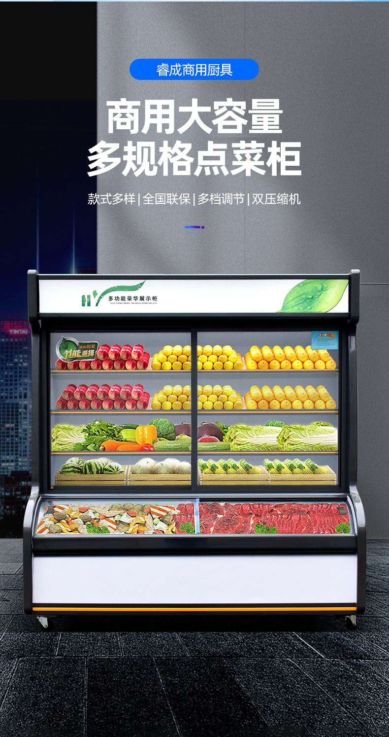 일품 캐비닛 냉장 및 냉동 3 온도 상업용 디스플레이 캐비닛 요리 레스토랑 바베큐 매운 튀김 문자열 냉장고 신선한 보관 캐비닛
